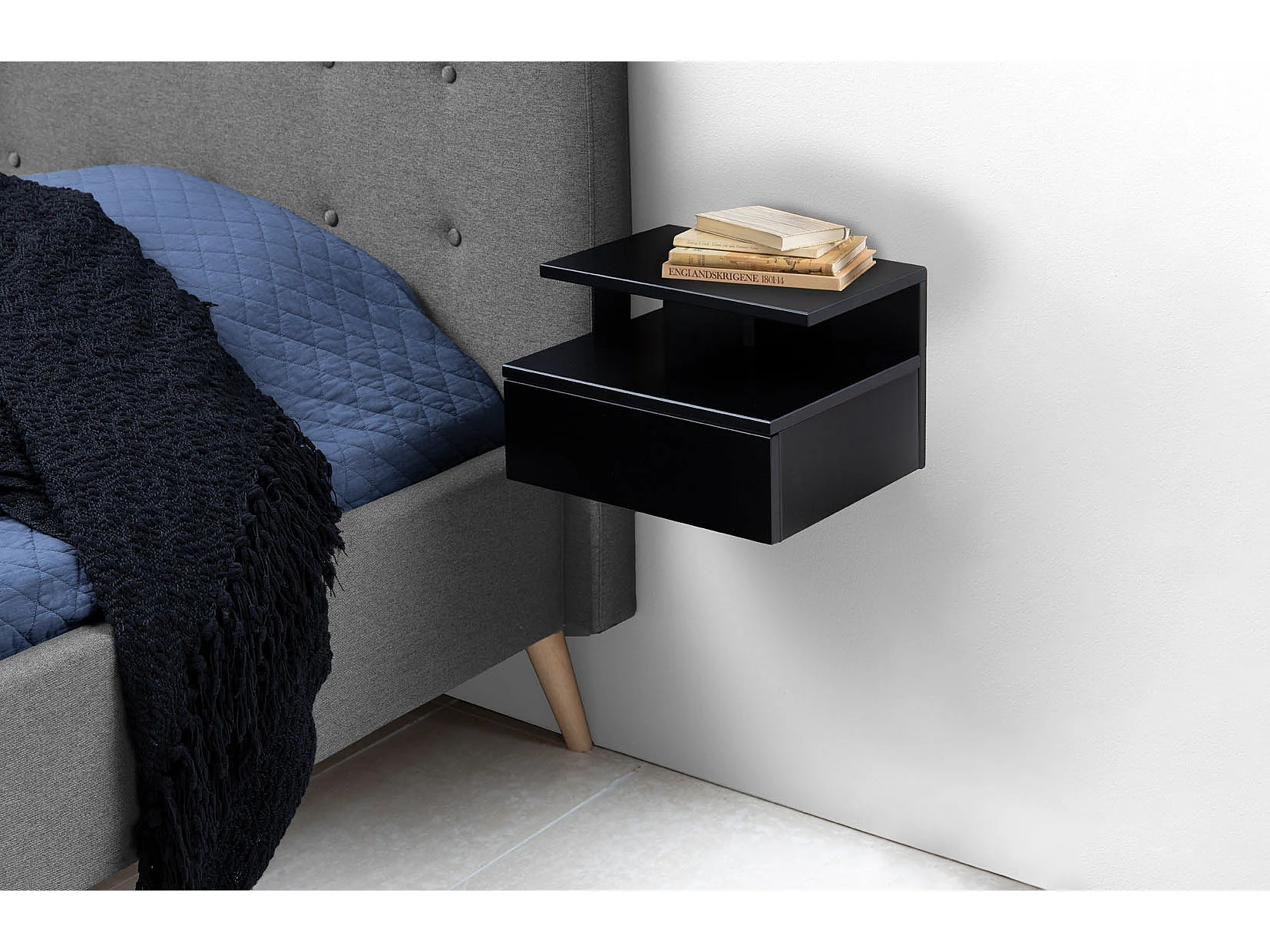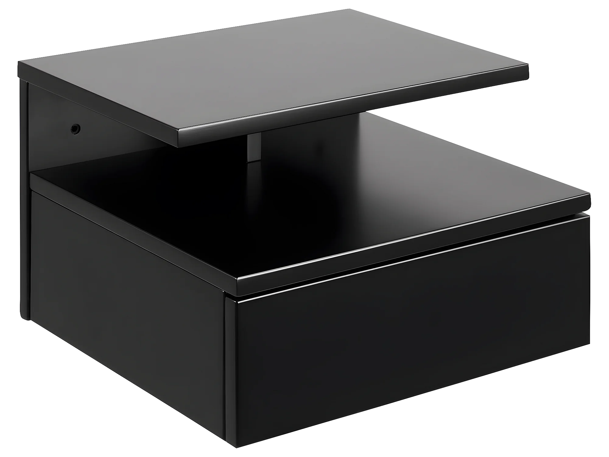 Ashlan Table de chevet murale avec 1 tablette de rangement, 1 tiroir, noir.