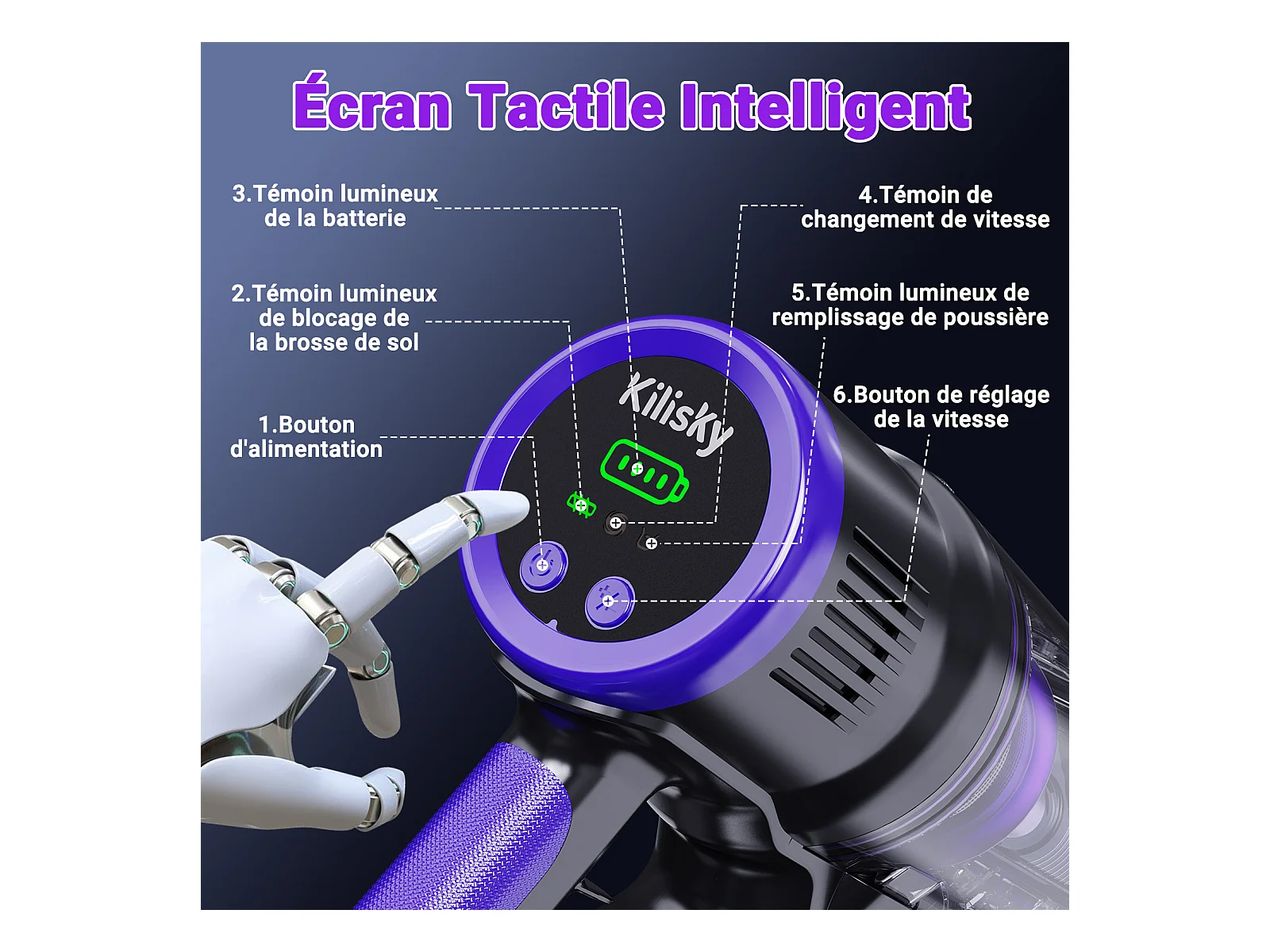 Aspirateur Balai Sans Fil - KILISKY - 700W - Écran Tactile - 65 min Autonomie - Filtre HEPA