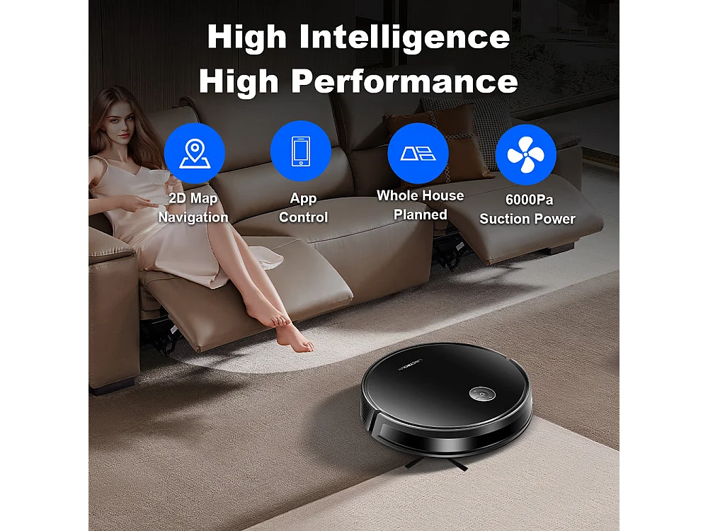 Aspirateur robot C7 avec fonction laveur, application Wi-Fi et télécommande, aspiration de 6 kPa, compatible avec Alexa et Google Assistant