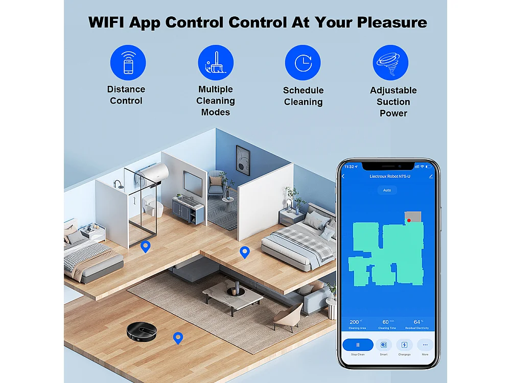 Aspirateur Robot - LIECTROUX - L200 - Nettoyage Eau et Poussires - Autonomie 120 min - Connect IoT