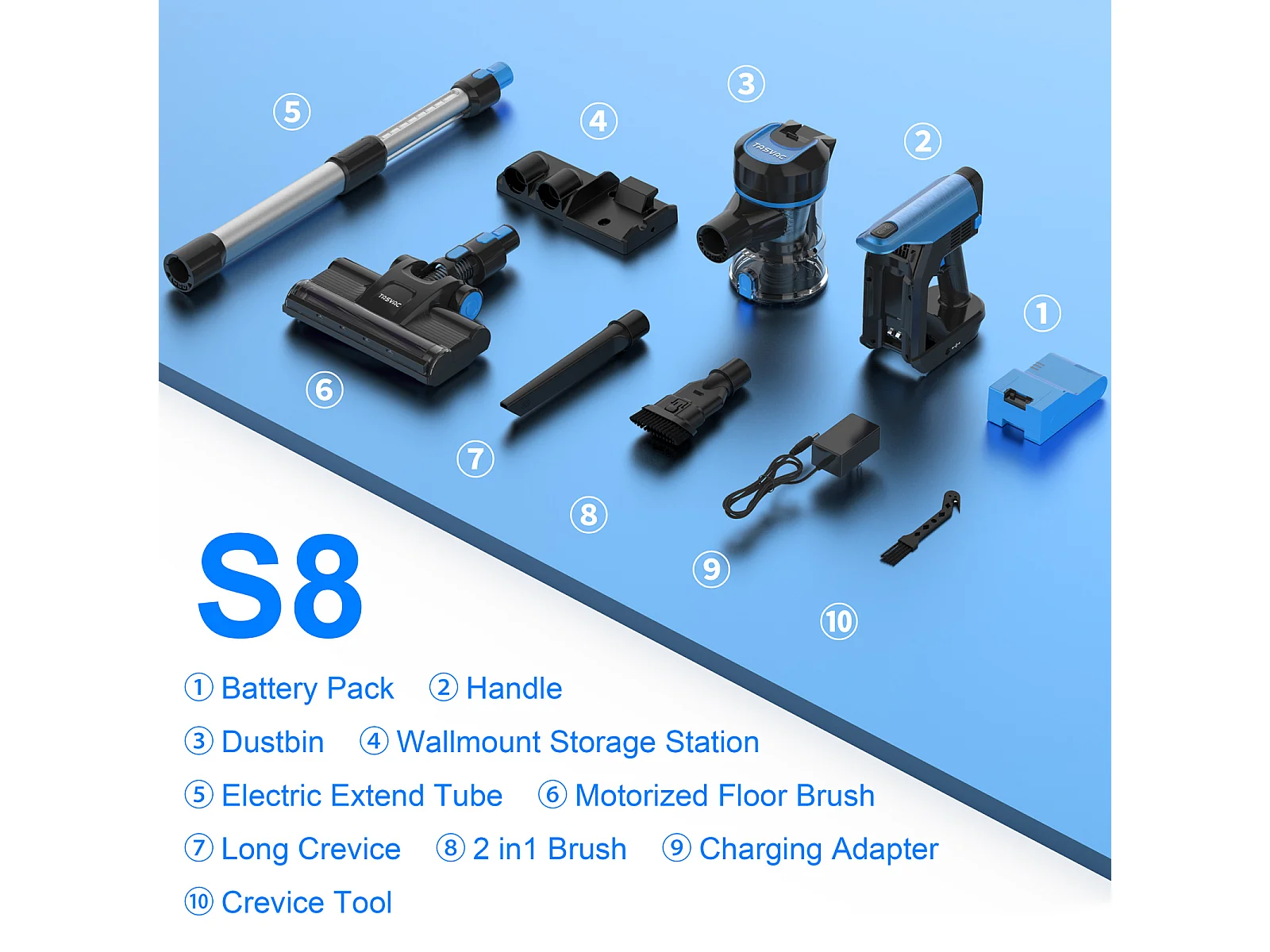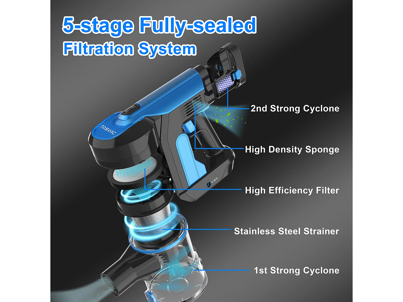 Hiazurm Aspirateur Balai - 480W Aspirateur Sans Fil - 40000Pa - Batterie 2200 mAh - 50 Minutes d'Autonomie - Bac à Poussière 1,5L