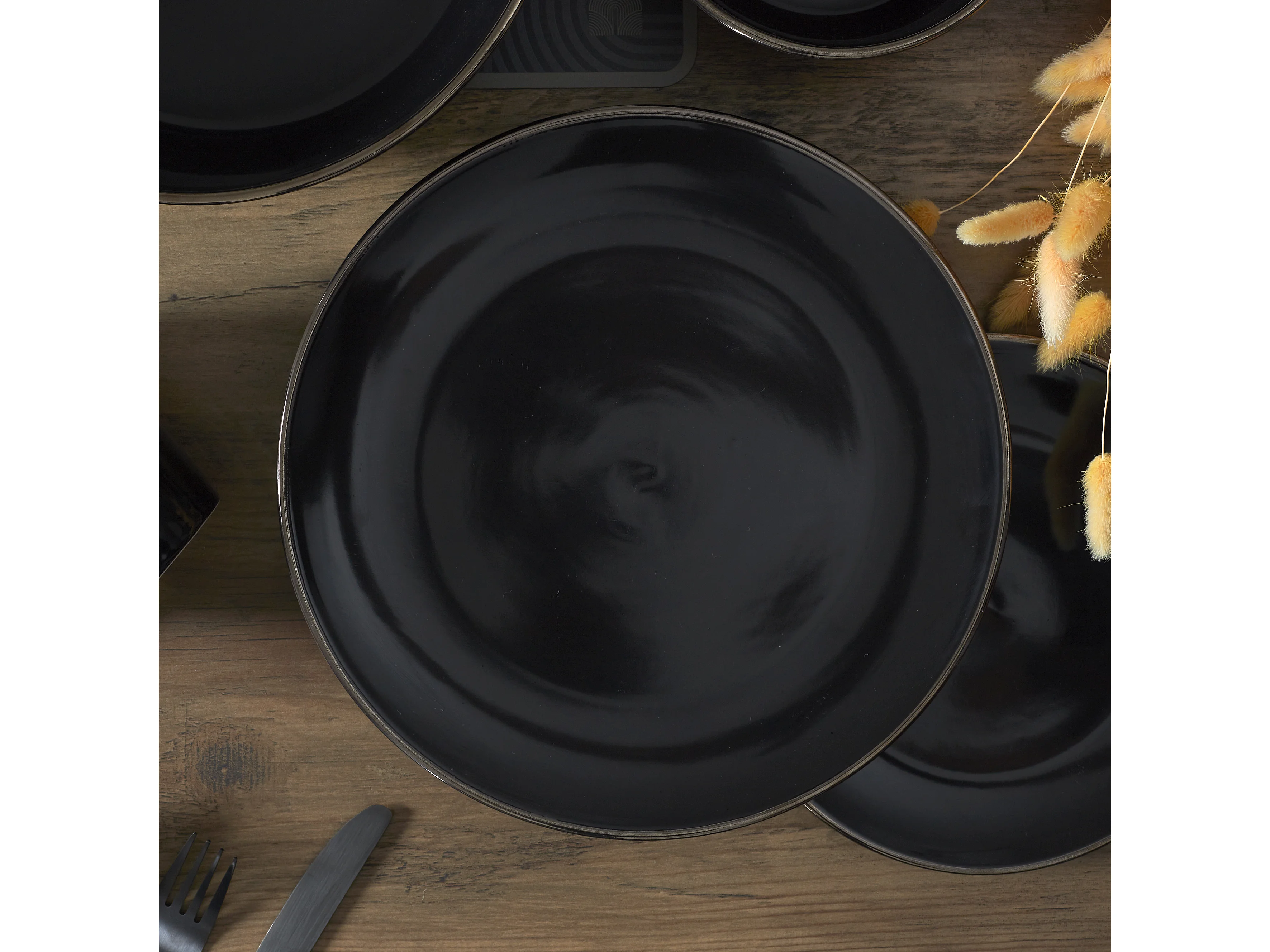 Assiette Noire Lisere Dore D26cm Noir, Or