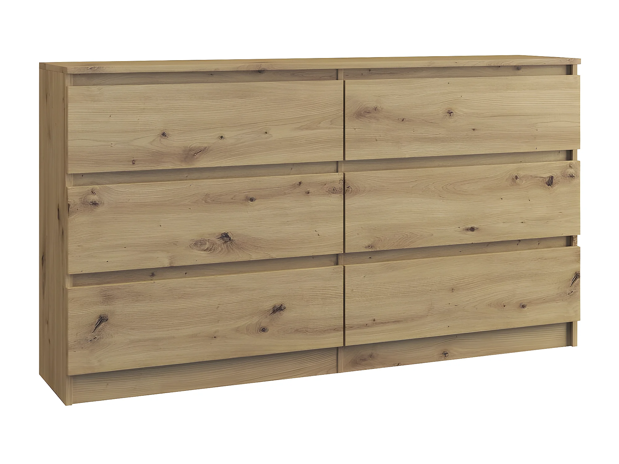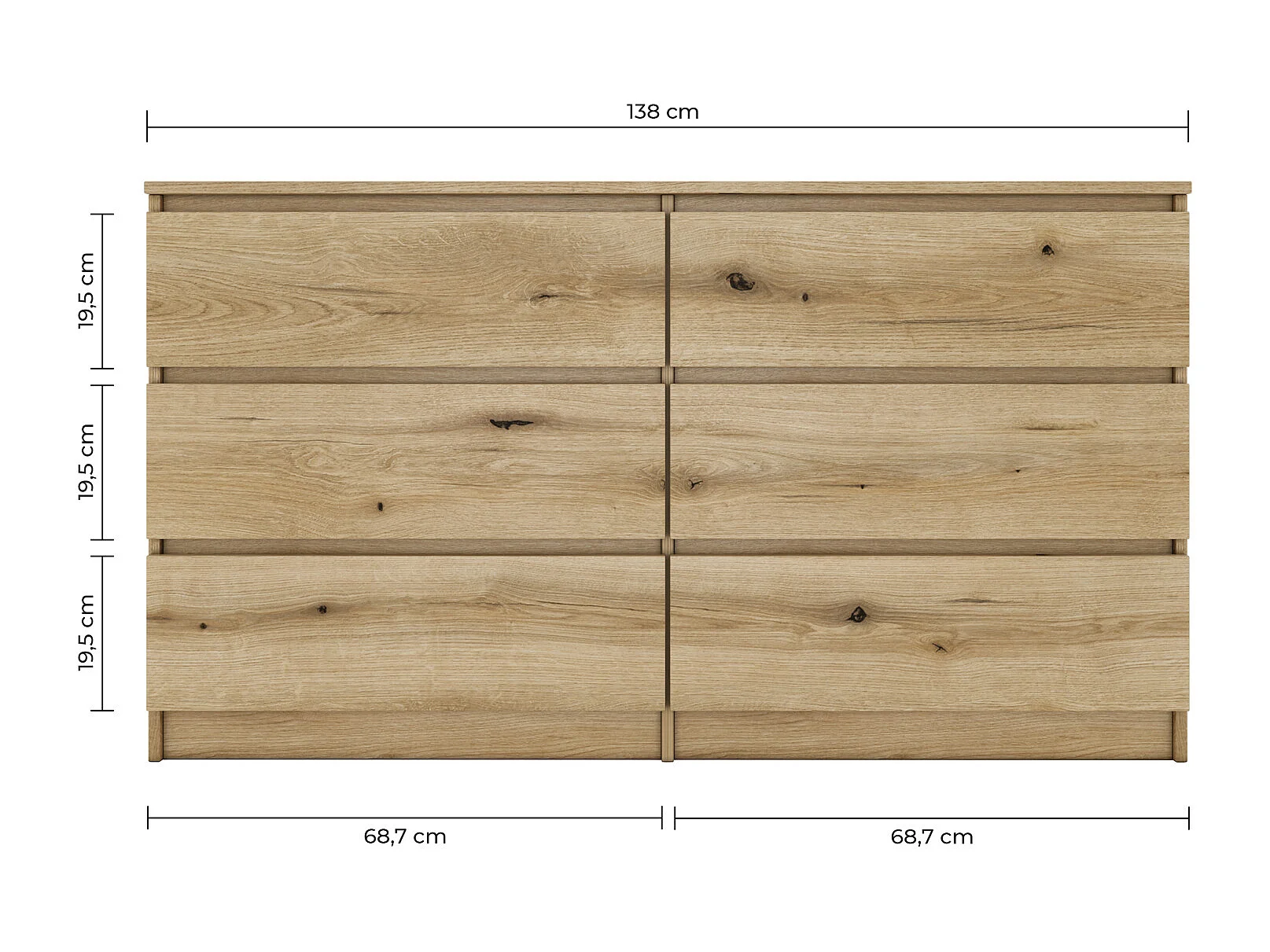 ASTER - Commode large chambre salon bureau - 6 tiroirs - 138x40x75cm - 6 tiroirs - Style scandinave - Aspect bois