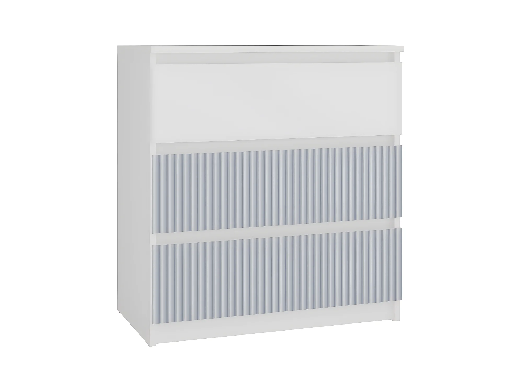 ASTER T3 - Commode chambre/bureau pour enfant - 70x40x77 - 3 tiroirs - Meuble de rangement moderne - Blanc et Bleu