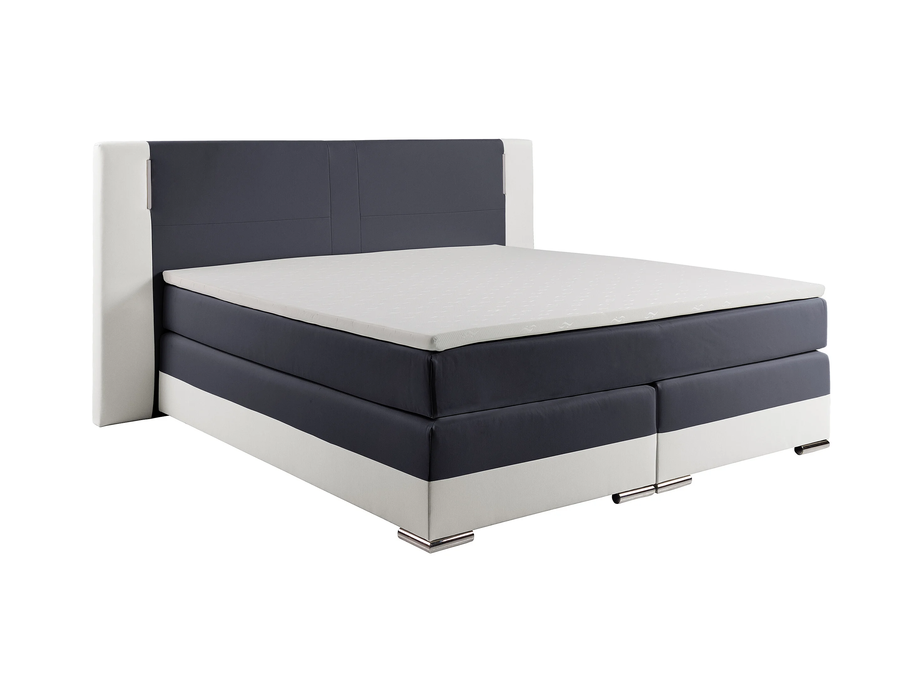 Ensemble complet boxspring tête de lit avec leds + sommiers + matelas + surmatelas - 180 x 200 cm - Simili - Blanc et gris - ASTI II de YSMÉE