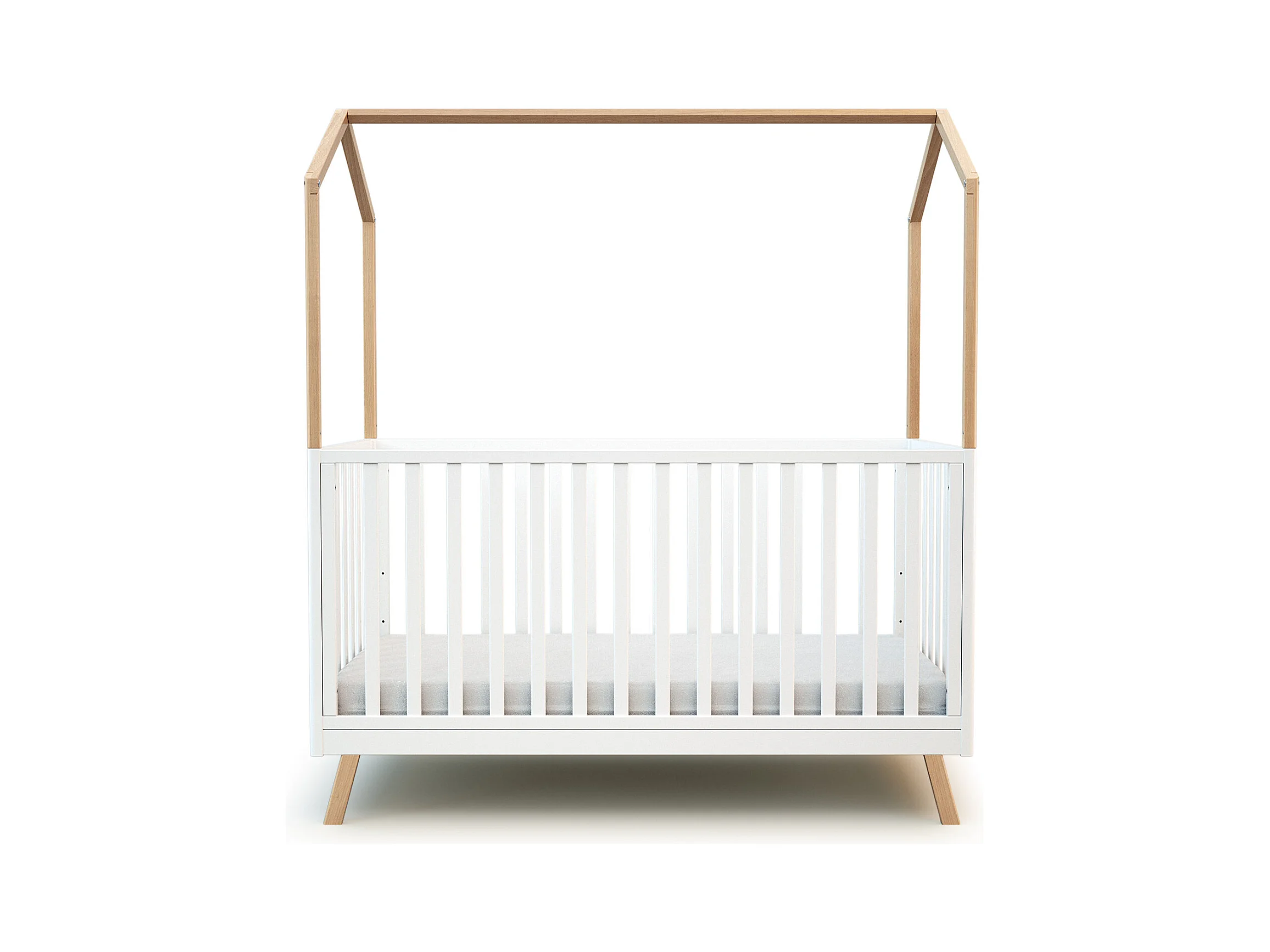 Lit cabane bébé évolutif en bois CONFORT Blanc et Hêtre Verni 70 x 140 cm