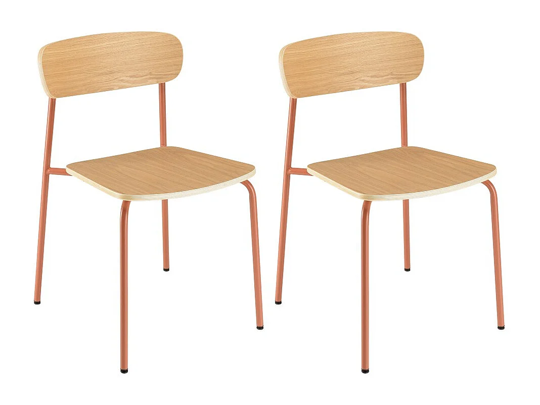 TOM - Lot de 2 chaises écolier en bois de frêne et acier terracotta