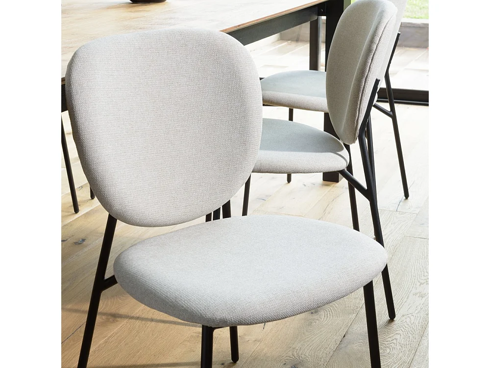 TOM - Lot de 2 chaises tissu écru pieds acier noir