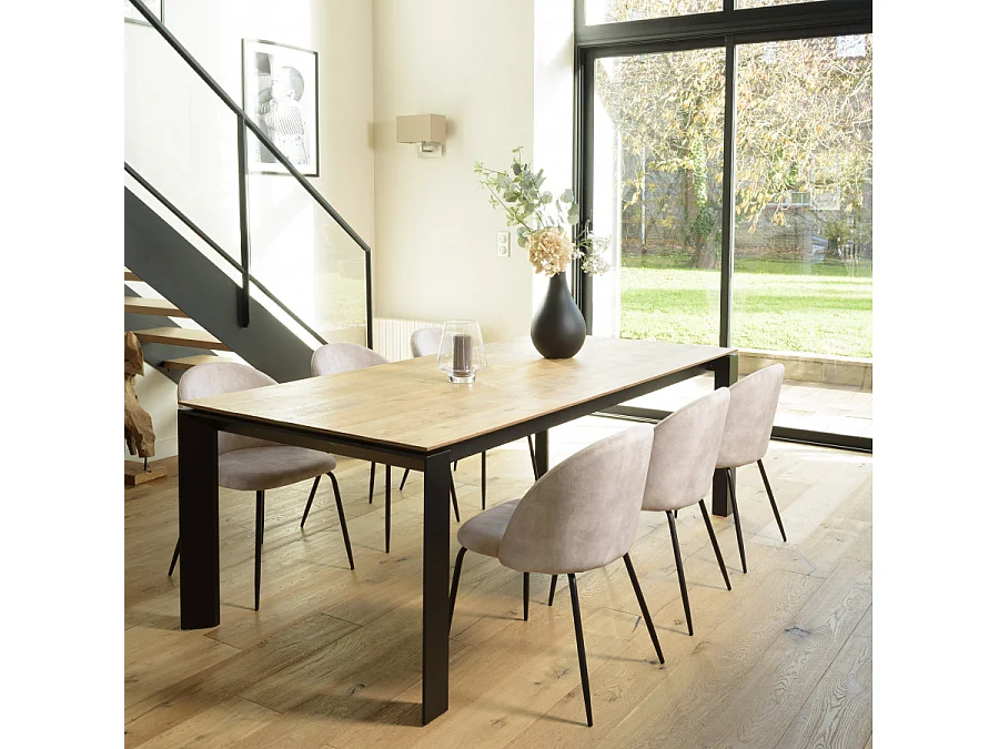 TOM - Lot de 2 chaises dossier arrondi tissu velours beige pied noir