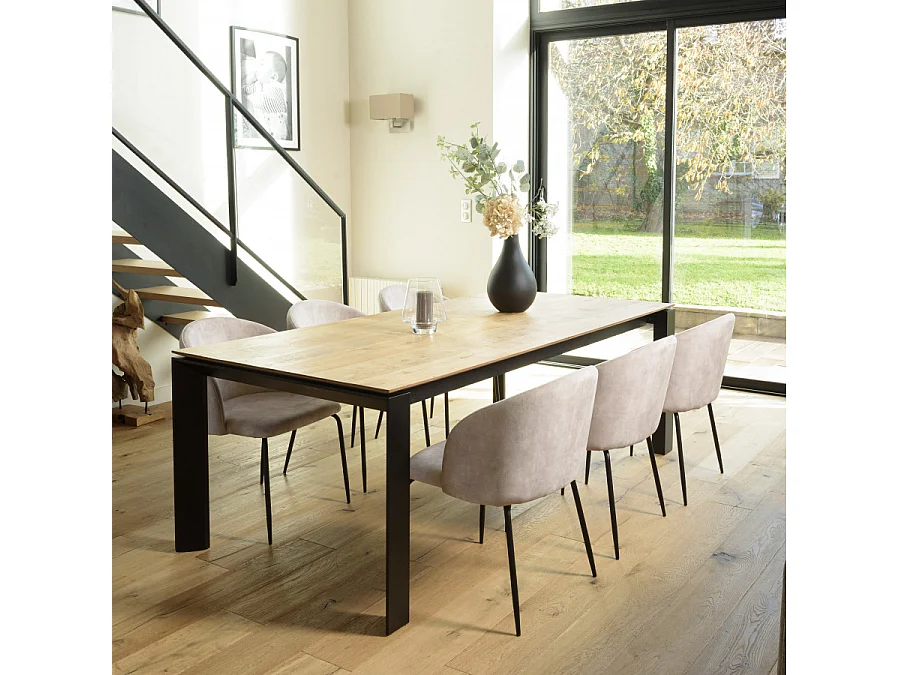 TOM - Lot de 2 chaises dossier enveloppant tissu velours beige