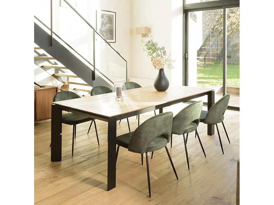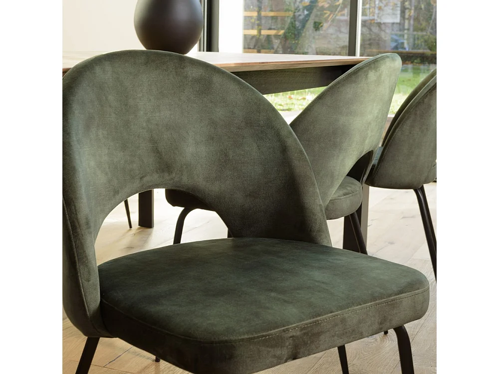 TOM - Lot de 2 chaises dossier ouvert tissu velours vert pieds noir
