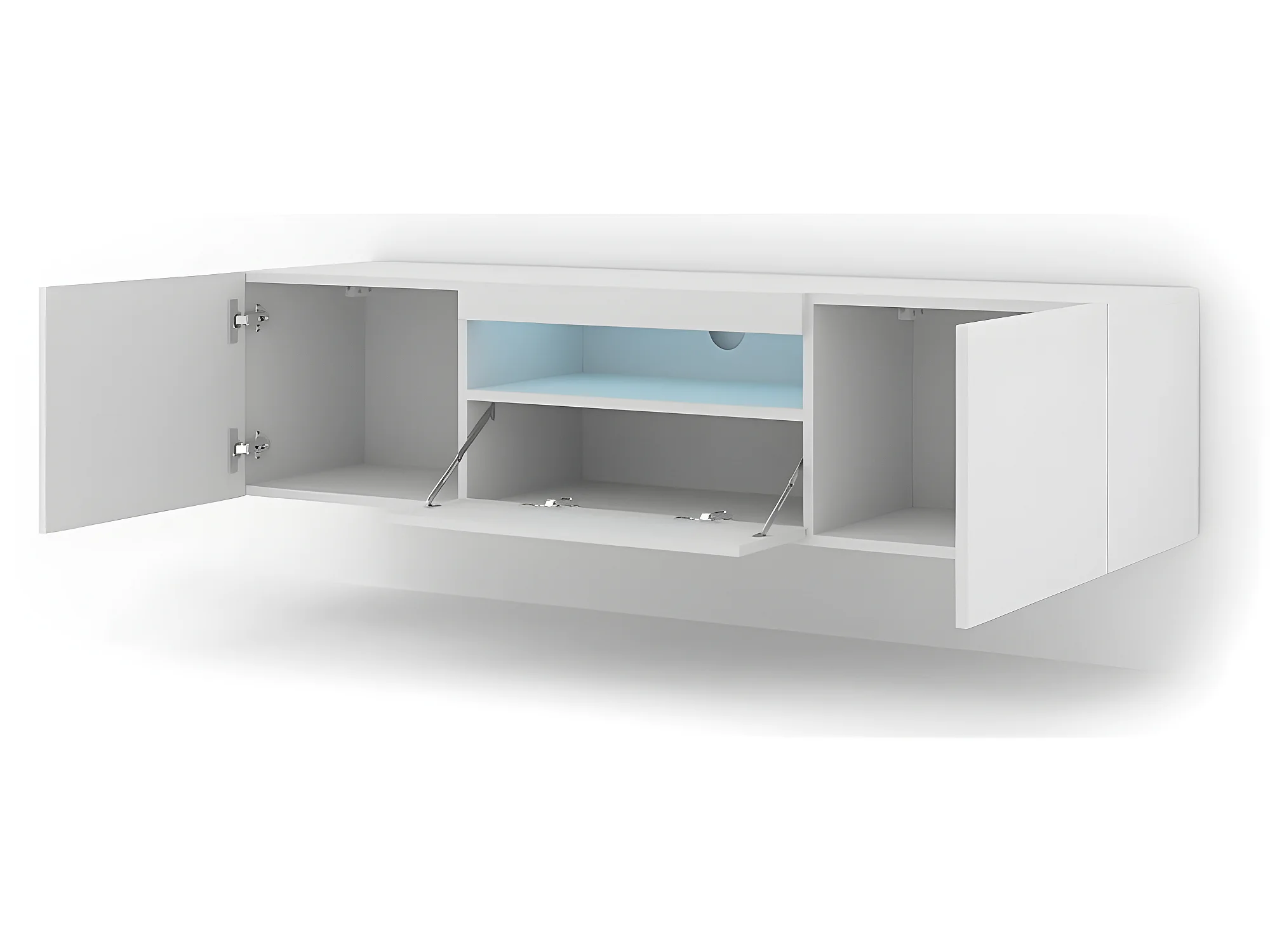 Aura Meuble TV bas universel 150 cm à suspendre ou à poser Armoire Hi-fi avec LED Blanc brillant