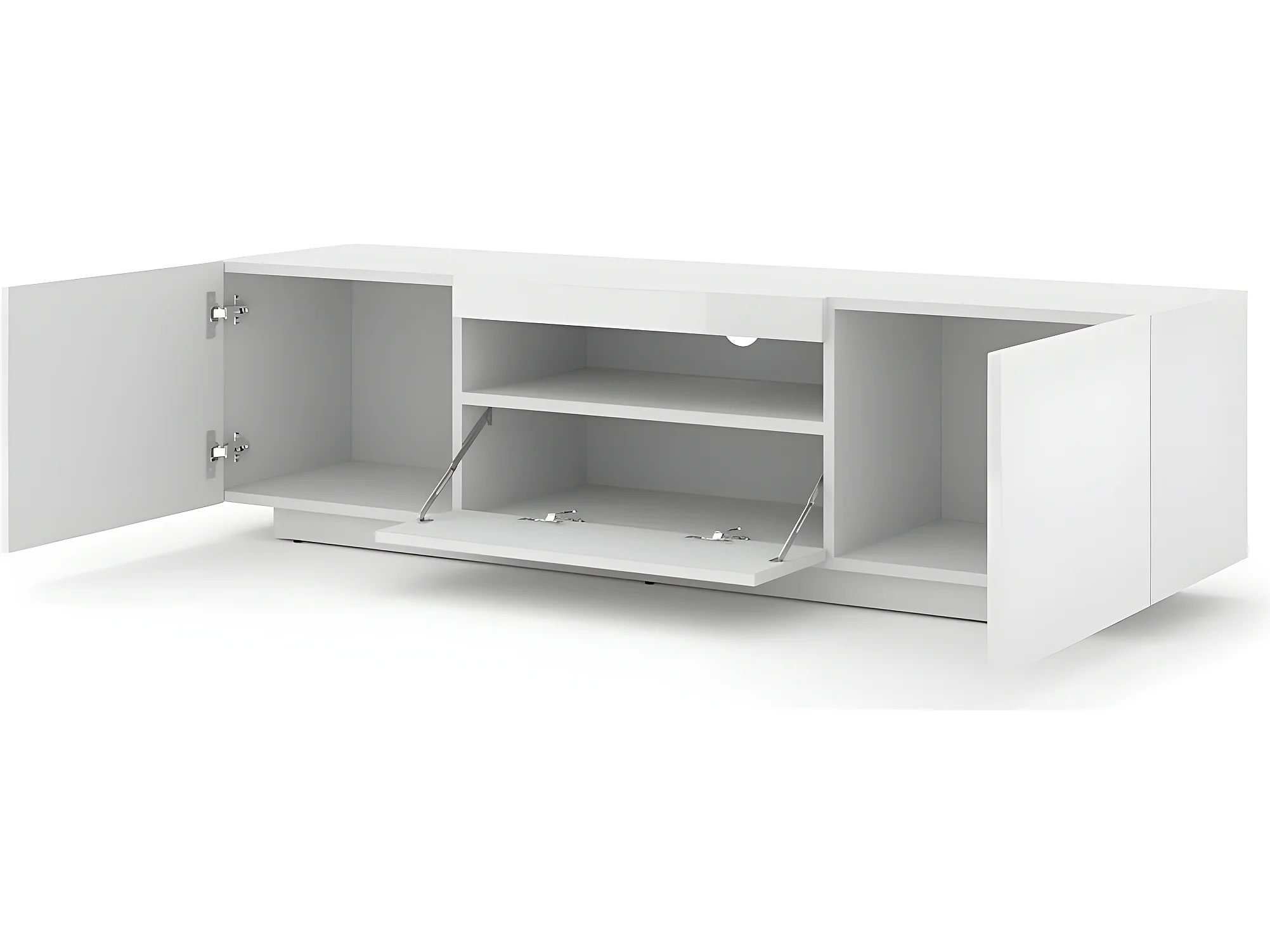 Aura Meuble TV bas universel 150 cm à suspendre ou à poser Armoire Hi-fi Blanc brillant