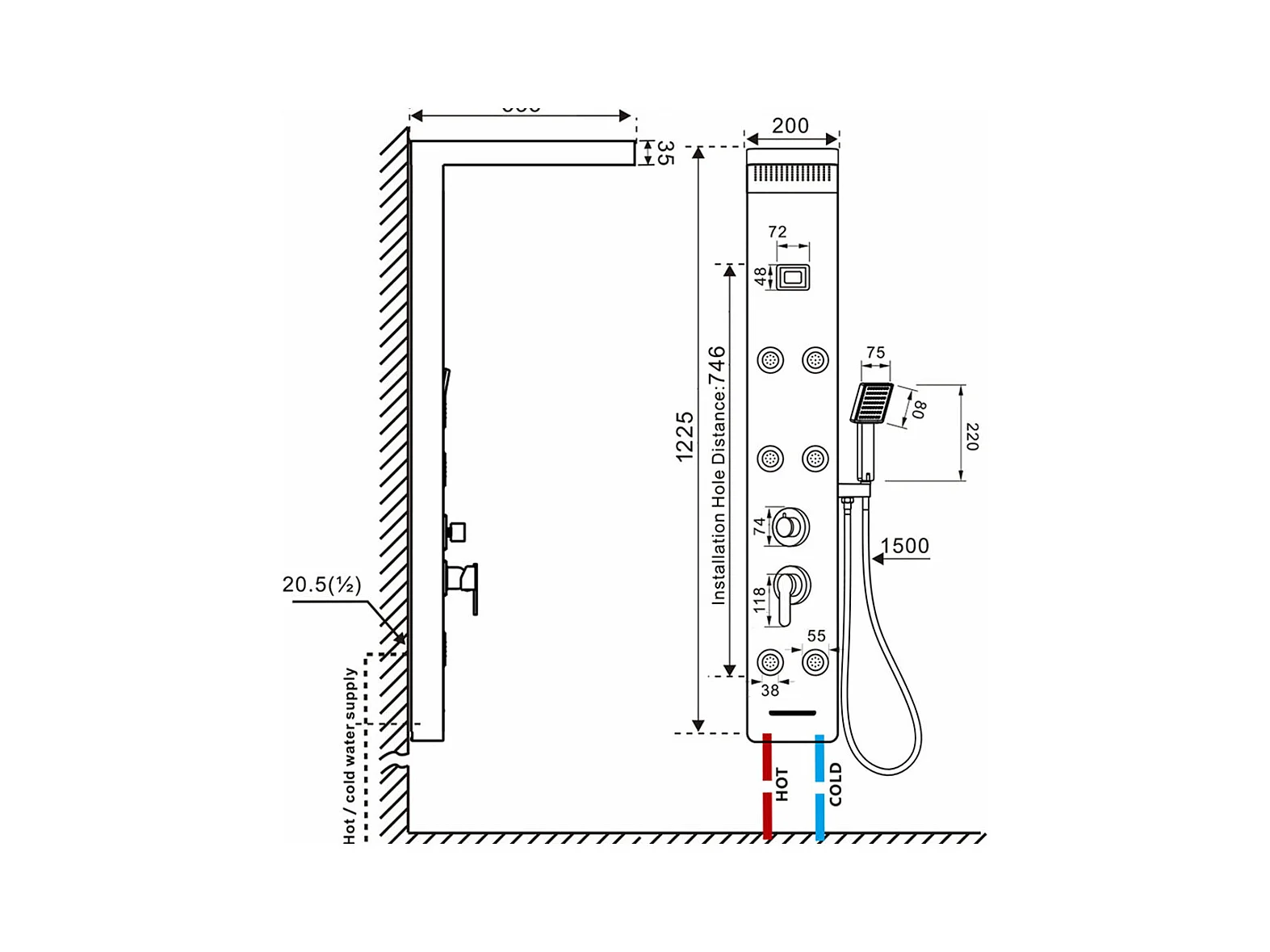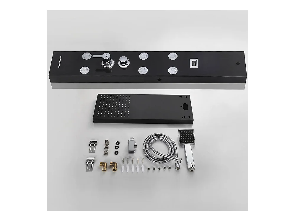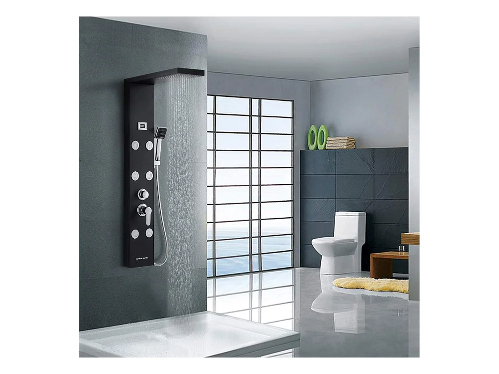 AURALUM MAX Colonne de Douche Noir LED Panneau de douche Hydromassages Système de Douche multifonctionnel colonne murale 6 Grandes Buses Massants