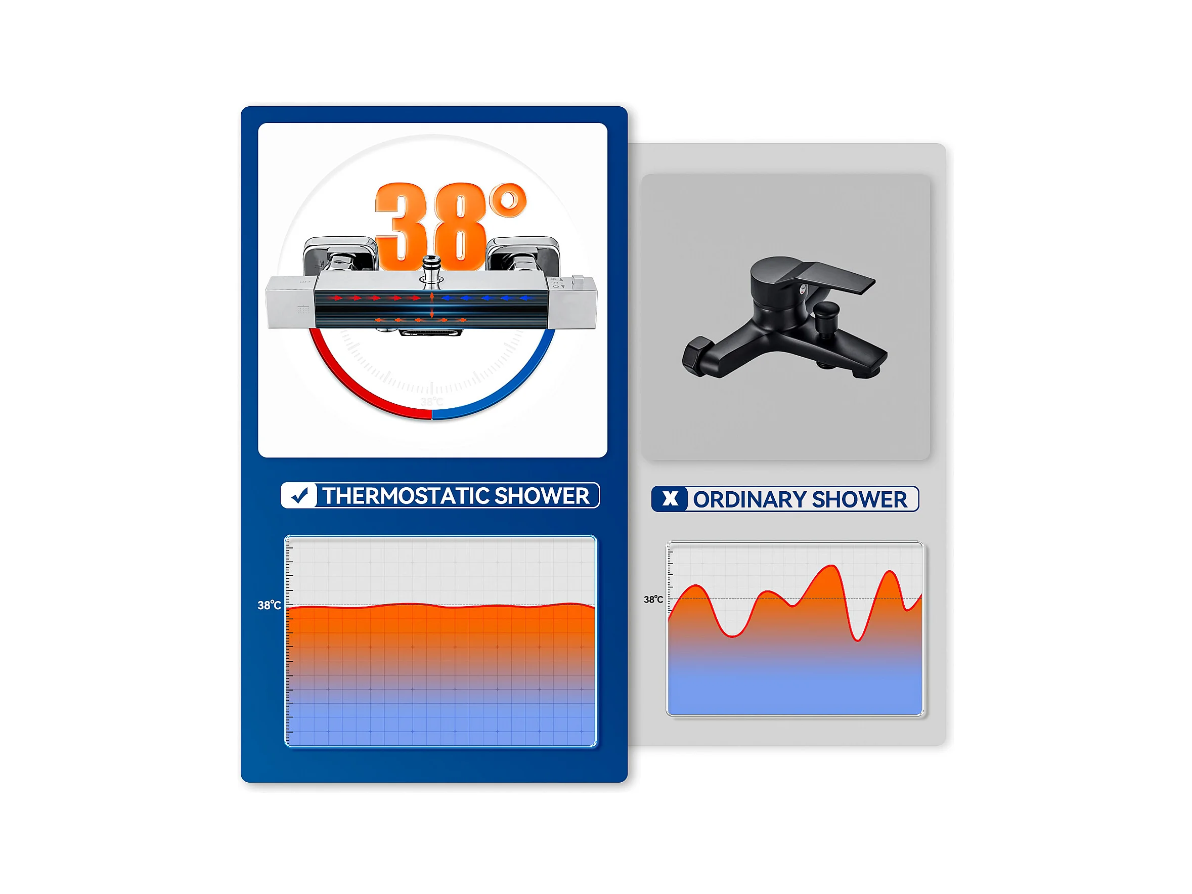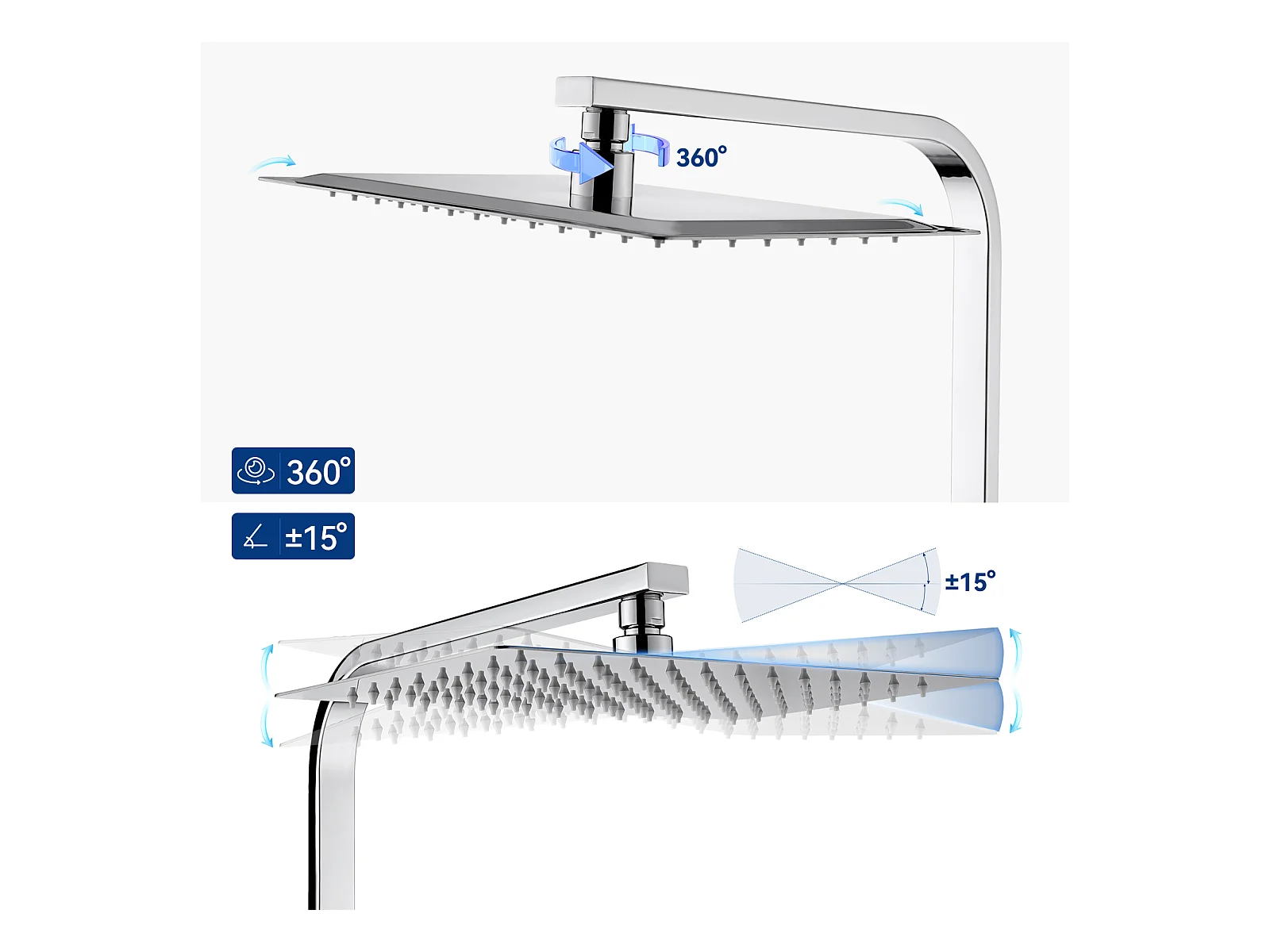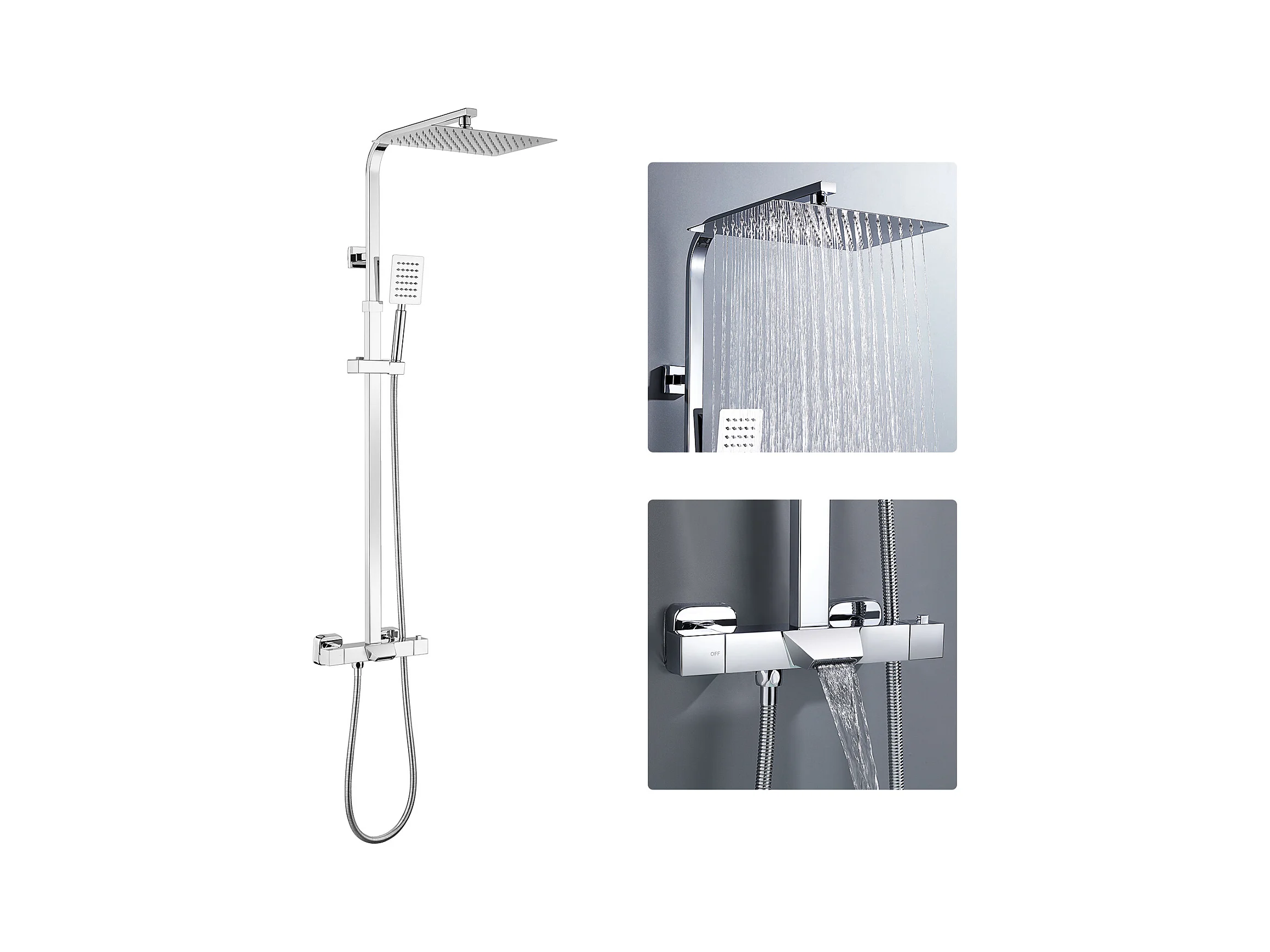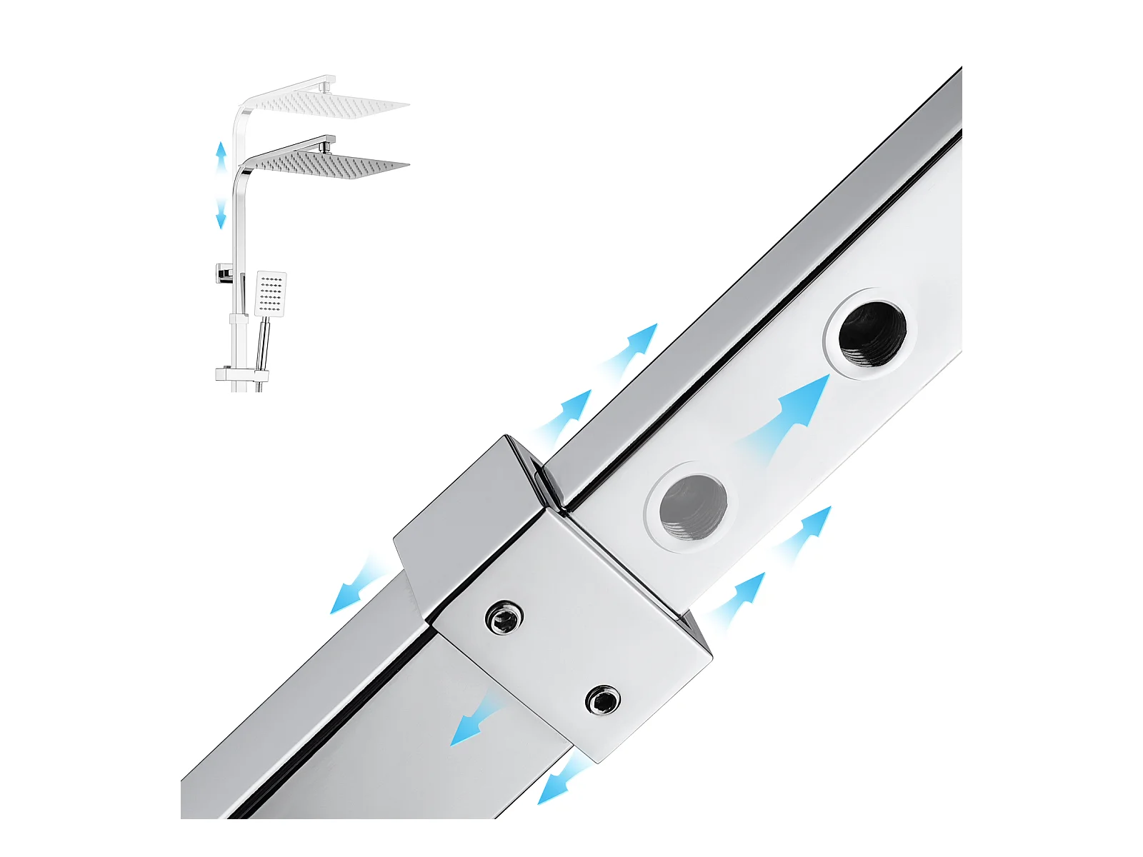AURALUM MAX Colonne de douche thermostatique,3 Fonctions Kit de Douche en laiton,avec Mitigeur Douche Cascade,Hauteur Réglable 98.5-129.5 cm,Chromé