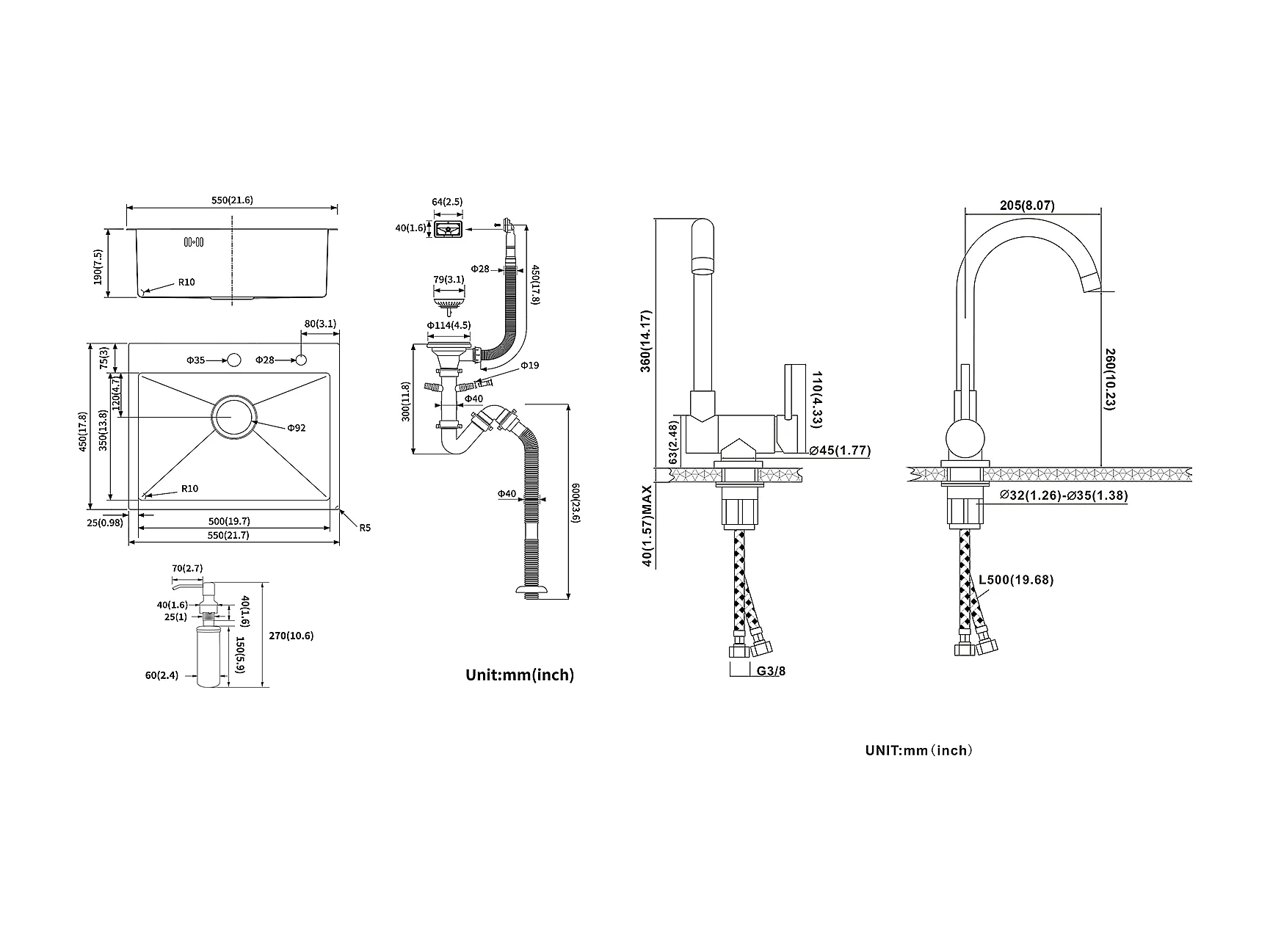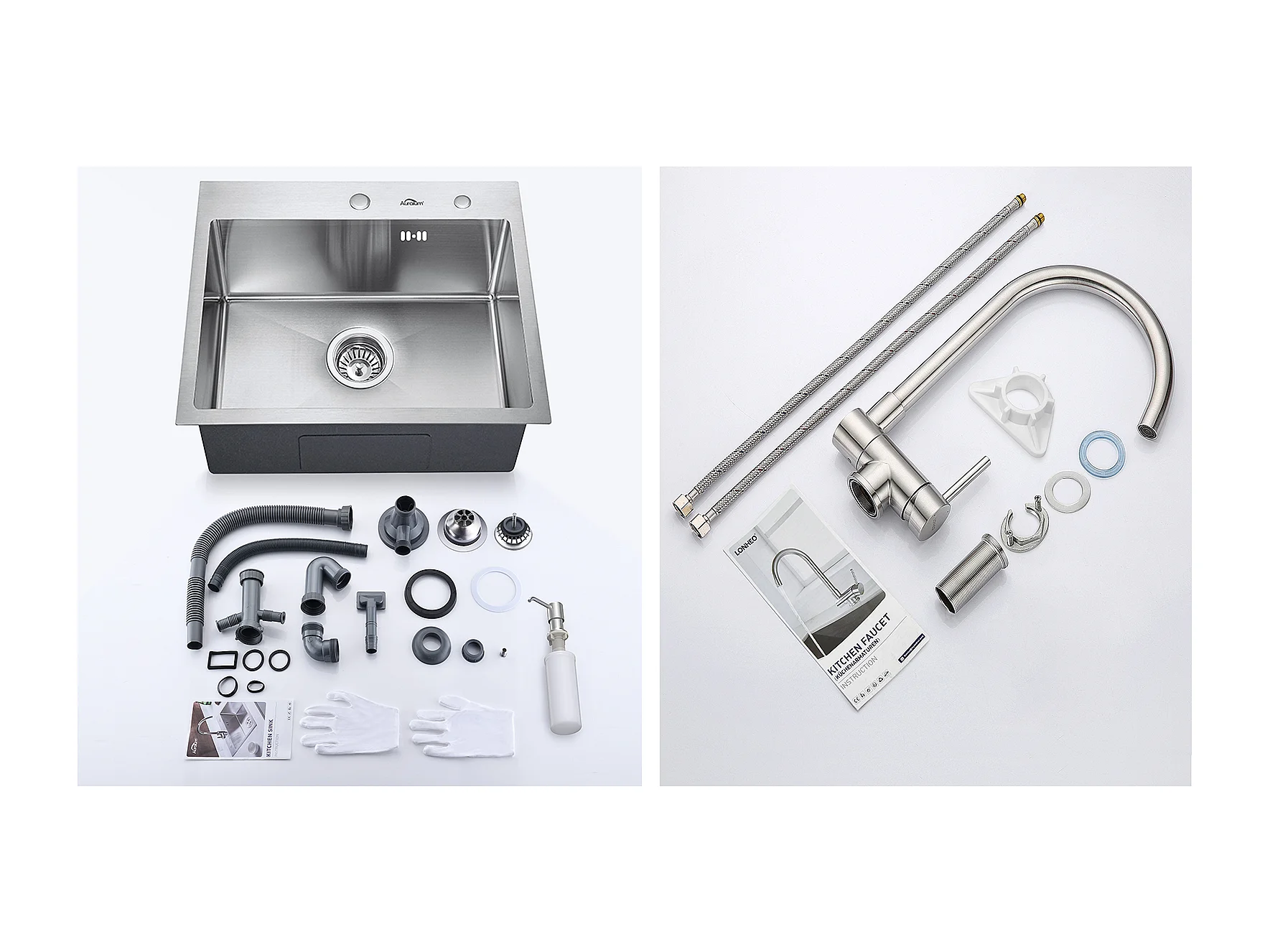 AuraLum Max Évier Cuisine 1 Bac 55*45CM Évier Encastré/à Poser avec Distributeur Savon+Mitigeur Cuisine en Acier Inox 304 Rabattable Pivotant 360°