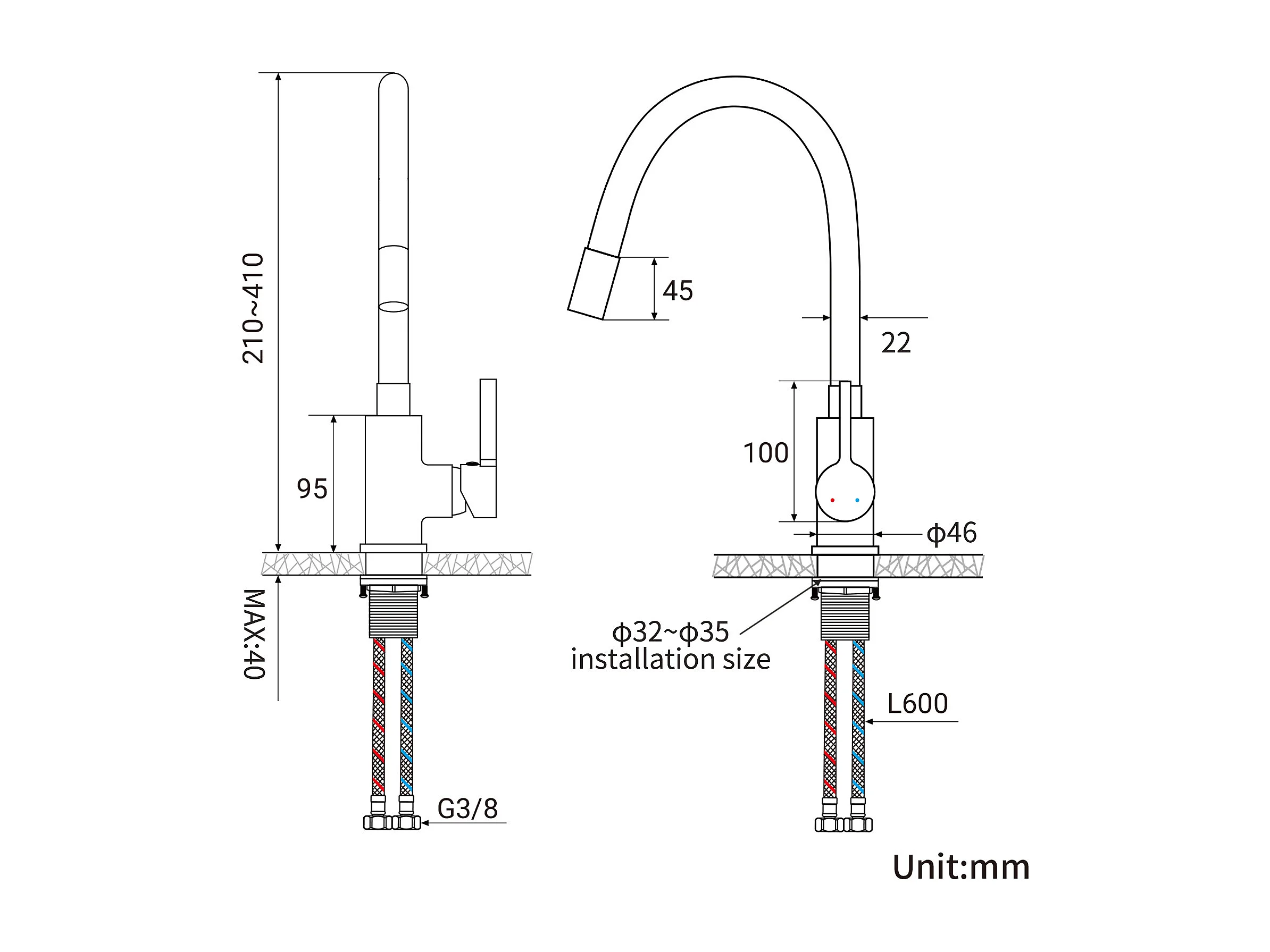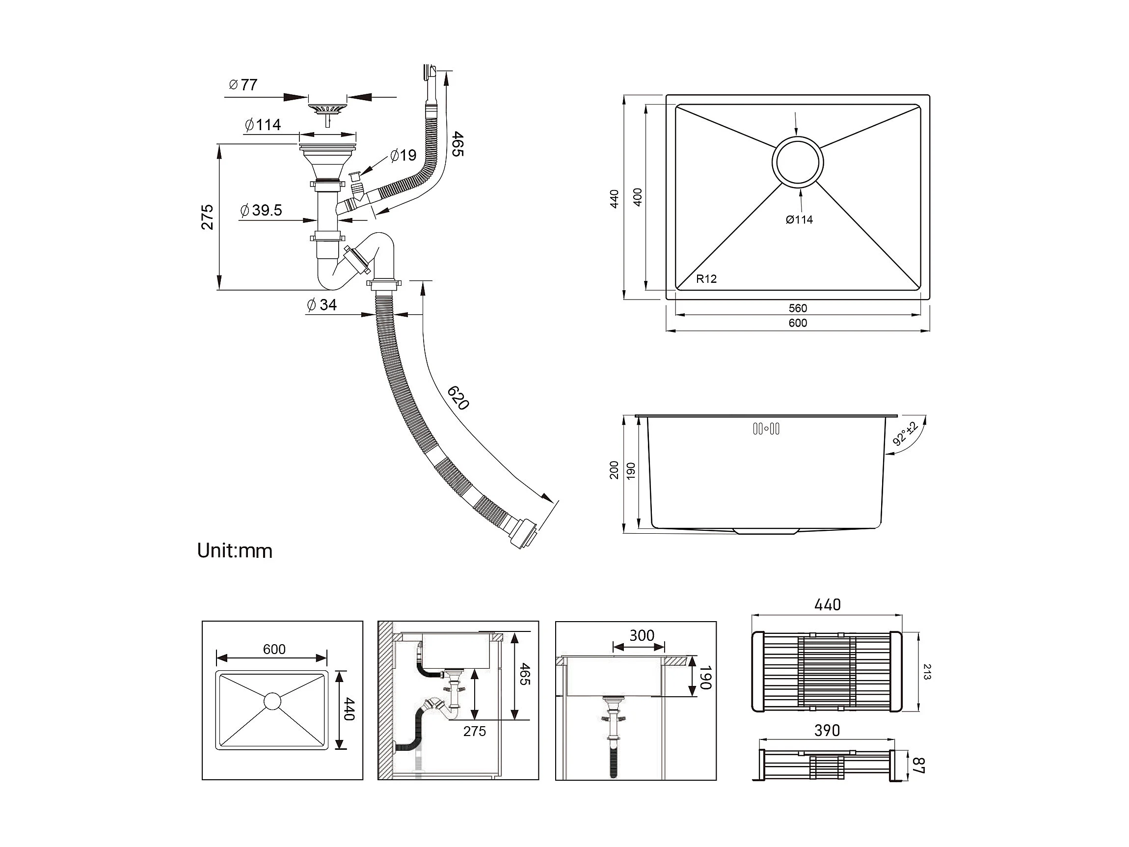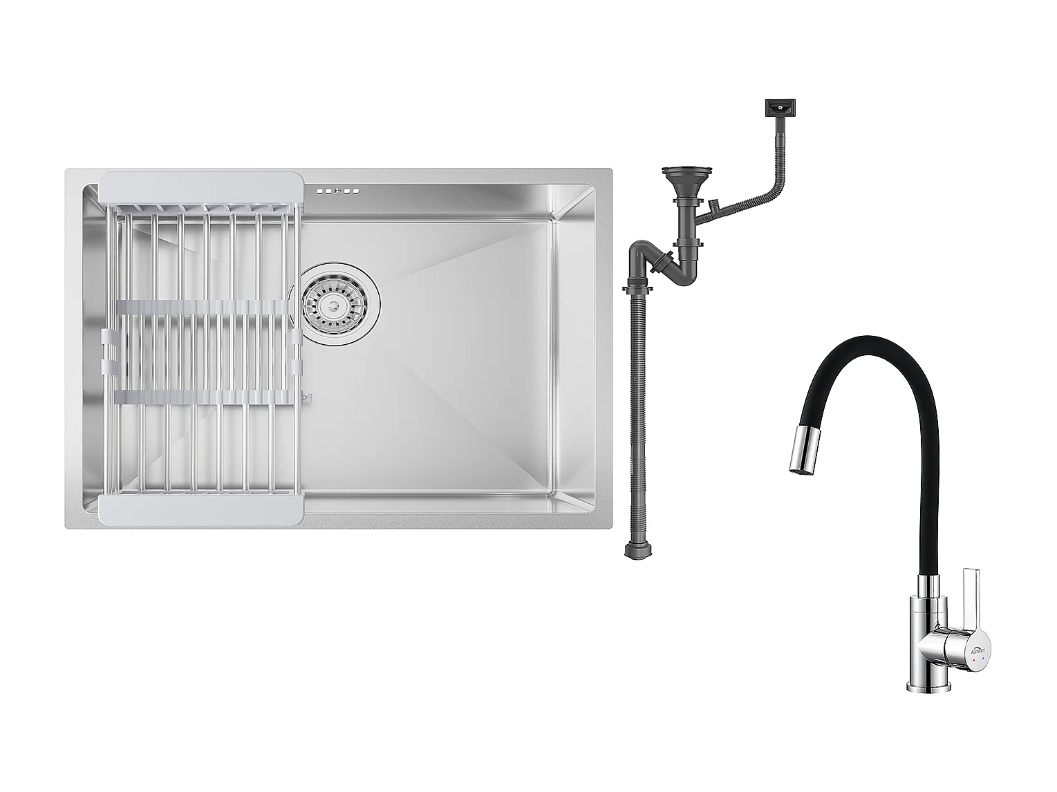 Auralum max Évier Cuisine 1 Bac 60*44*20CM,inox,à Encastrer/sous-plan avec Panier Drainage,Nano Silver+Robinet Cuisine Flexible Bec Haut Orientable