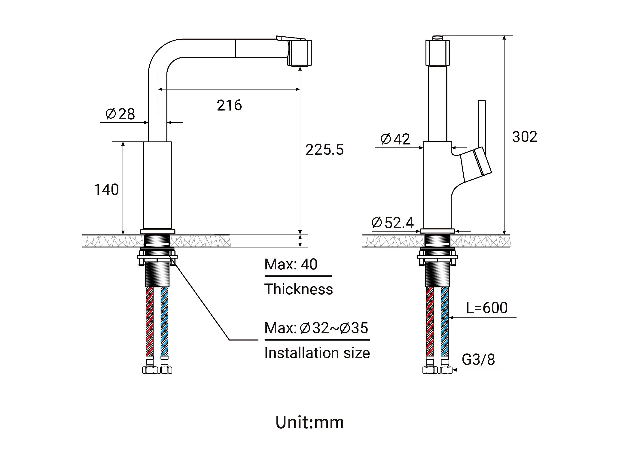 Auralum max Évier de Cuisine à Encastrer,1 Bac,60*49*20CM,Évier 1 Cuve en inox 304,Silver+Robinet Cuisine Noir avec Douchette Extractible,2 Jets
