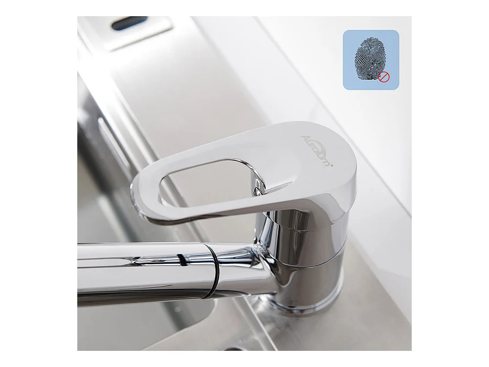 AuraLum Max Robinet Cuisine Douchette avec 2 Modes Pulvérisation,Mitigeur Cuisine avec Douchette Extractible Rotatif 360° ,Chrome,EU Modèle