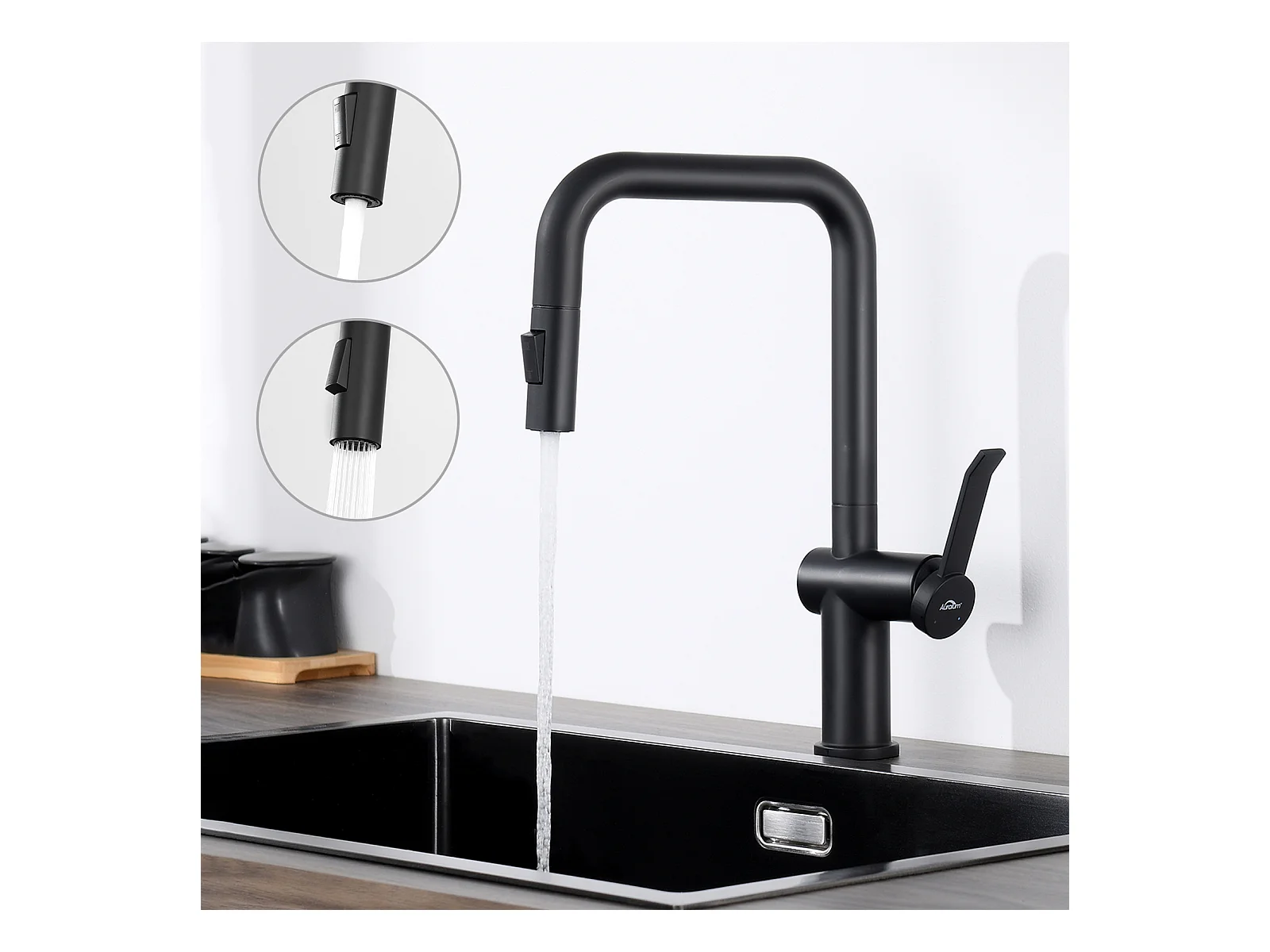 2PCS Cecipa MAX Robinet Douchette Noir Mitigeur de Cuisine avec Douchette Extractible Mitigeur Évier avec 2 Modes de Sortie D'eau