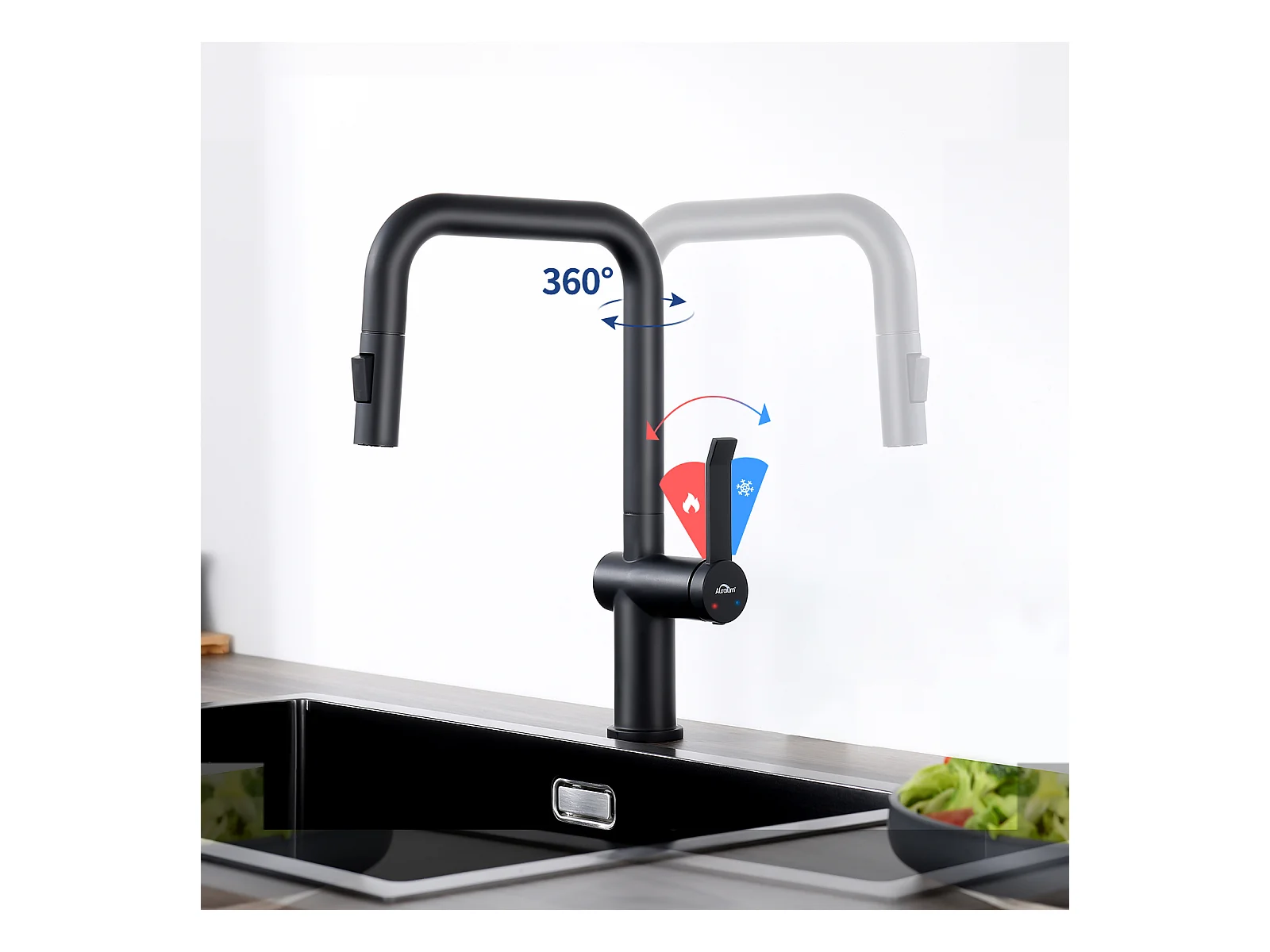 Lonheo Max Mitigeur Cuisine Rabattable Noir Pivotant 360°,Robinet Cuisine avec Poignée Pliable Contre Fenêtre,Acier Inox,Eau Chaude/Froide,EU Modèle