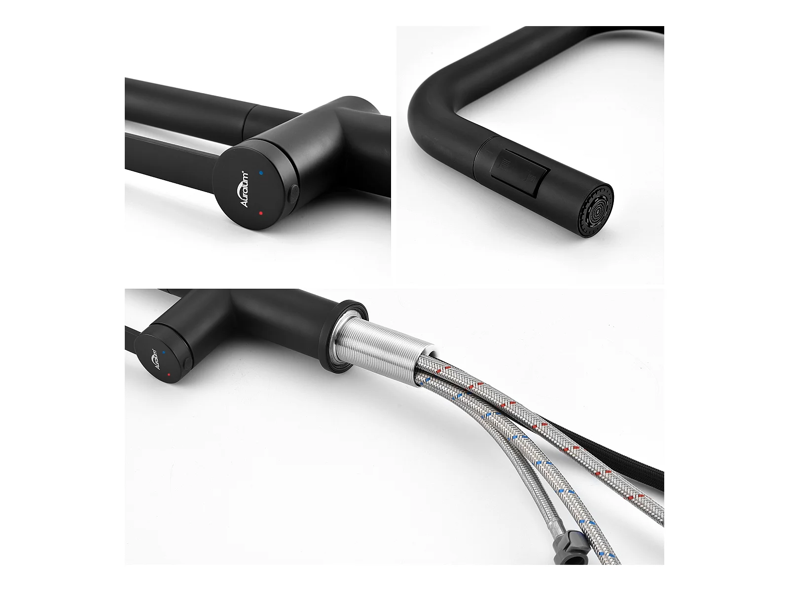 2pcs Mitigeur Cuisine Noir Douchette Robinet Douchette évier Extractible 2 Jets Mitigeur Bec Pivotant 360° Acier Inox Barboteur Démotable,EU Modèle