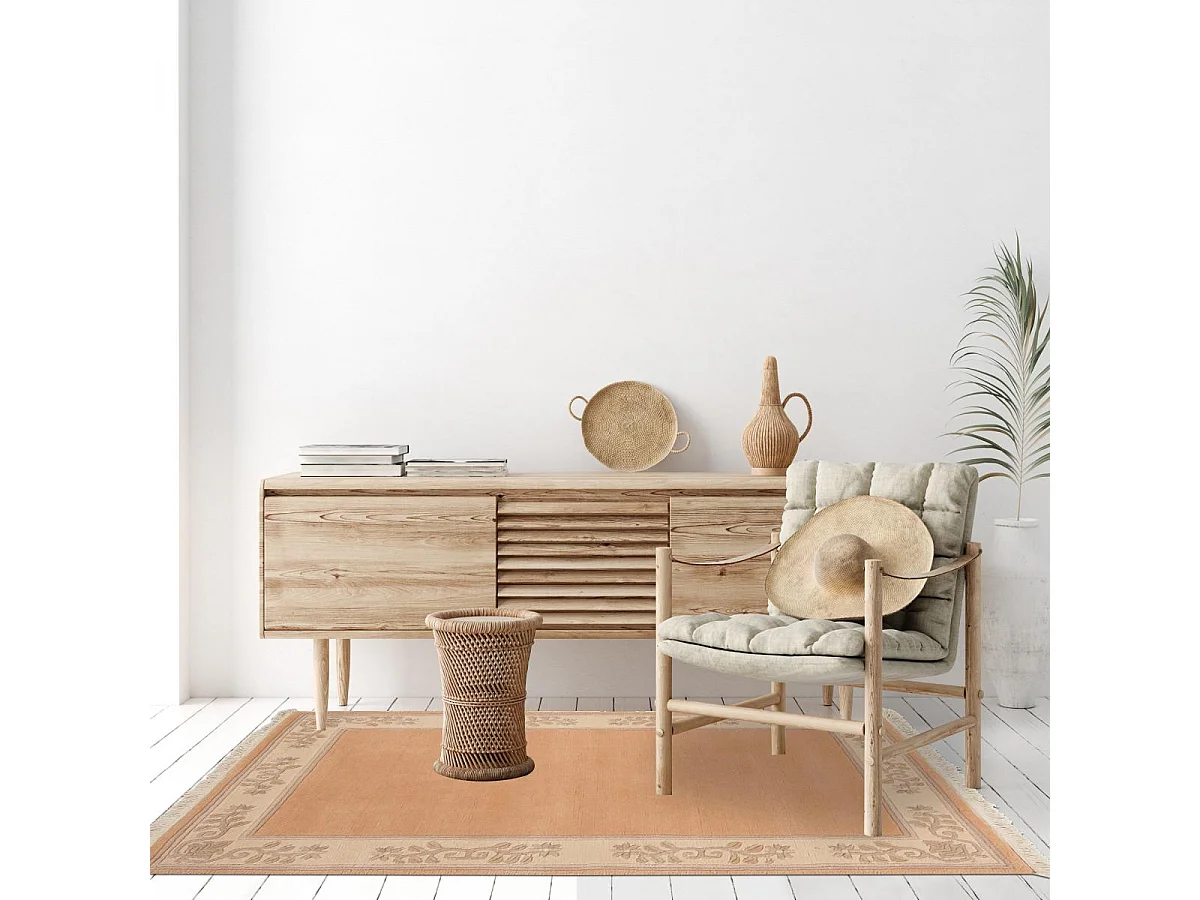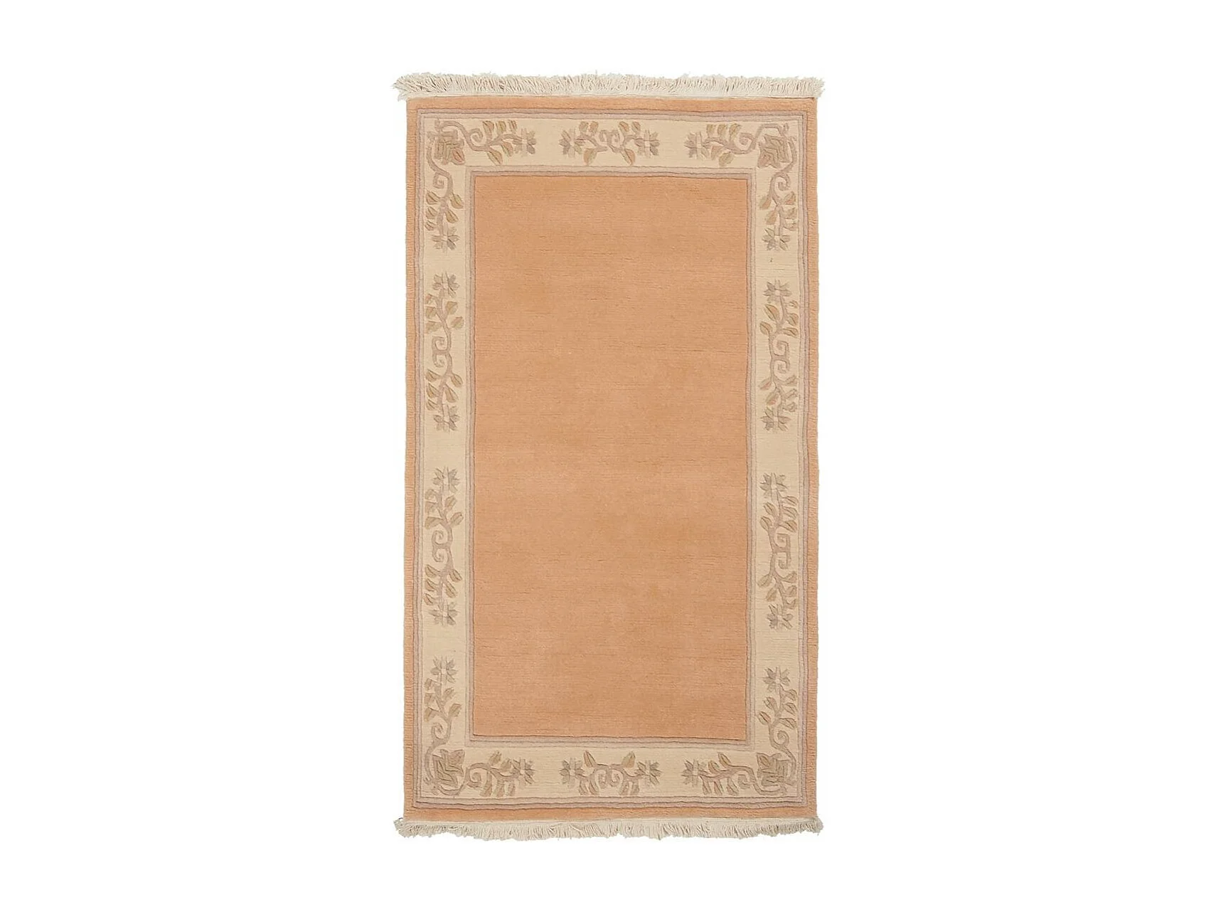 tapis Chambre 90x160 fait main en laine beige et rose rectangle motif floral