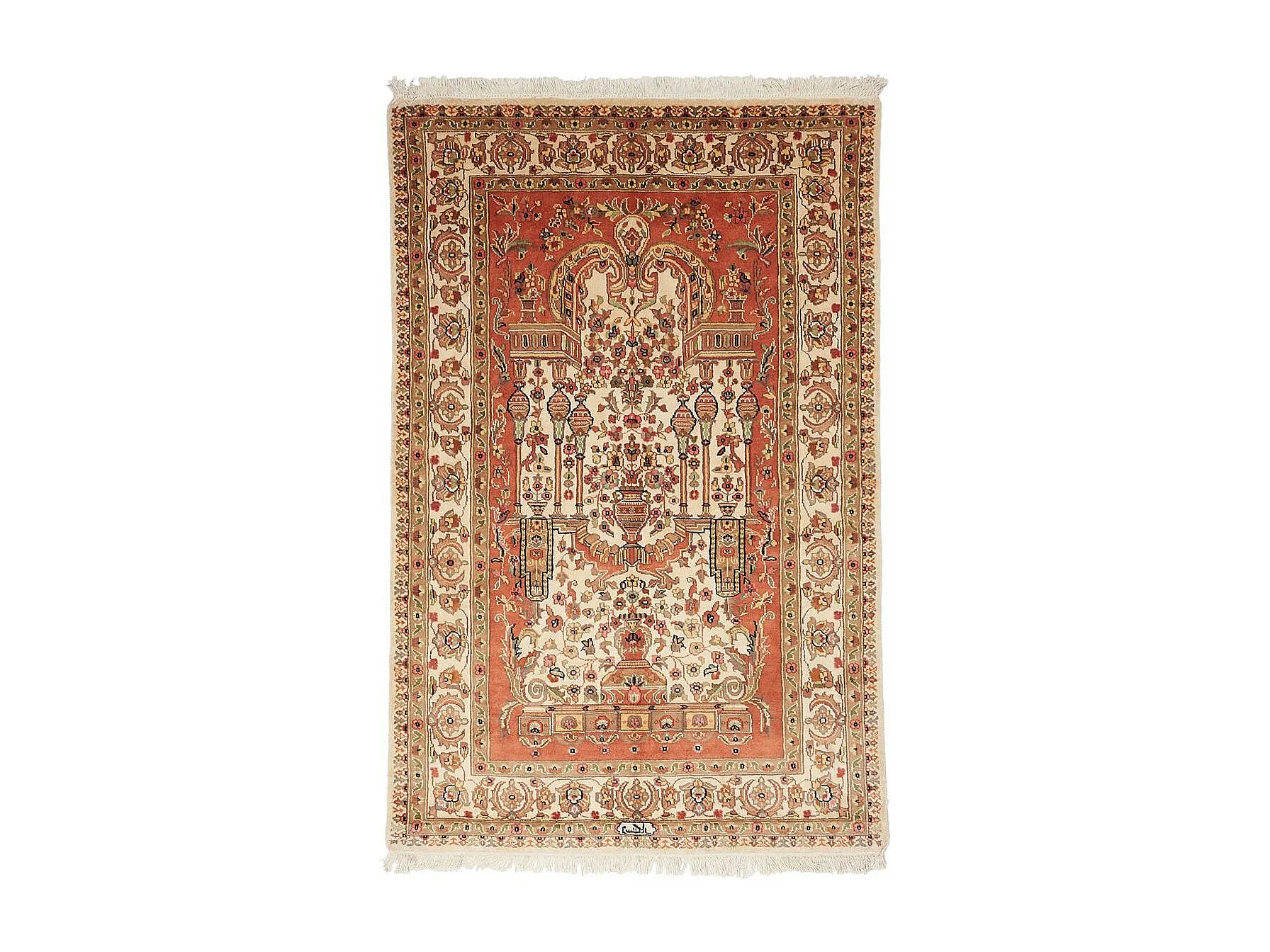 Authentique tapis d'Orient 125x195 fait main en soie beige JIHANGIR 91