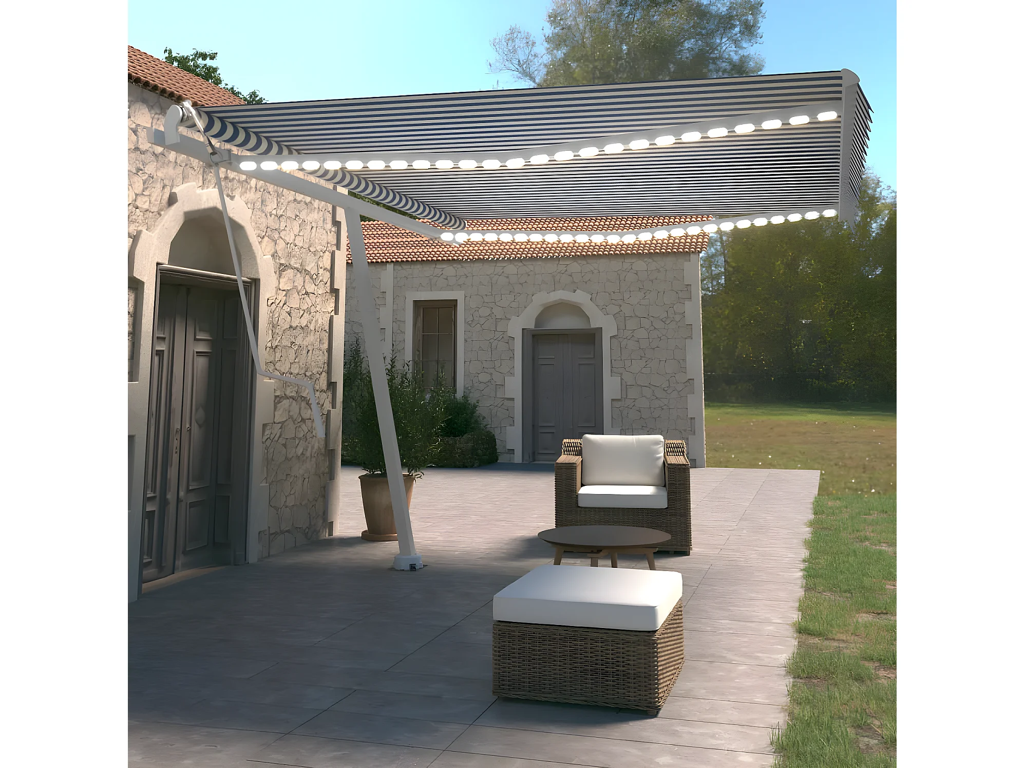 Auvent automatique capteur de vent LED 450x350 Bleu et blanc