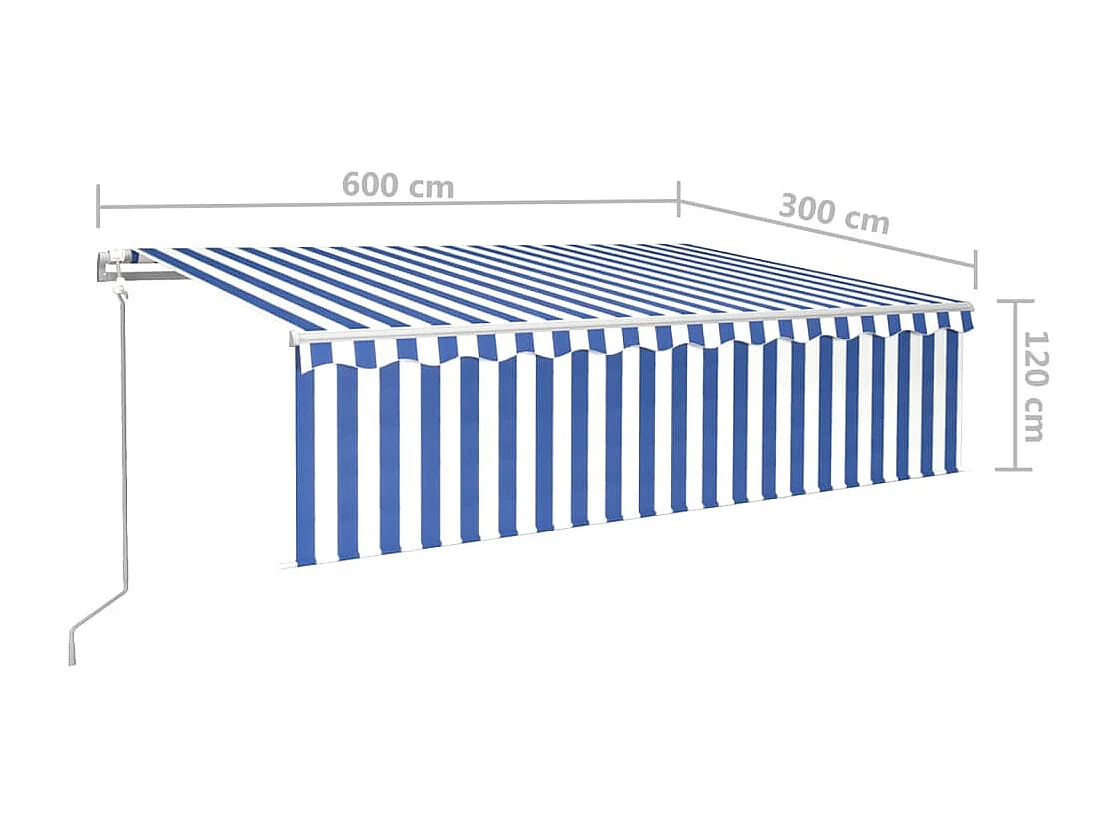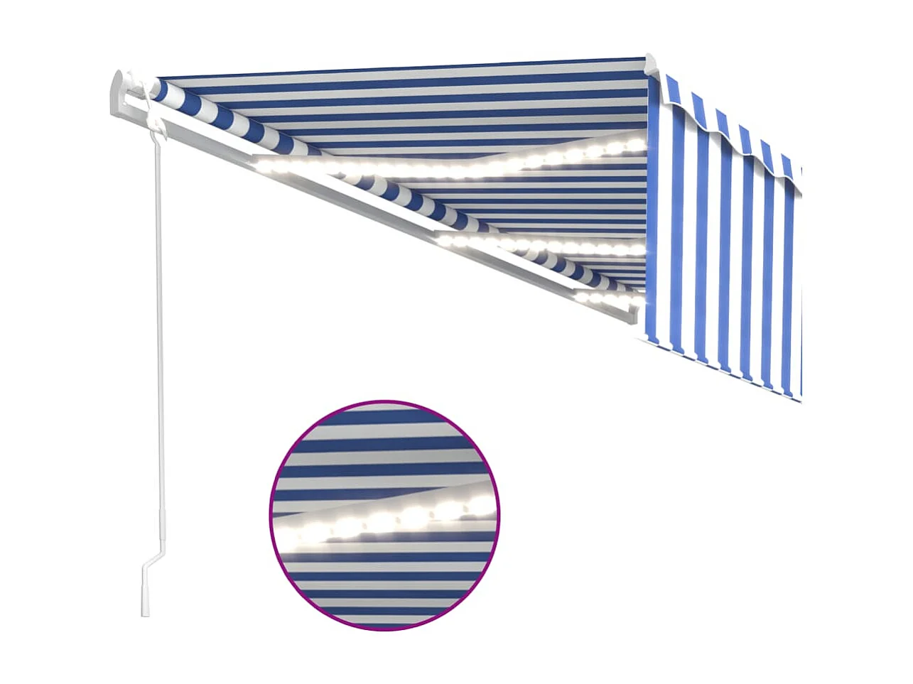 Auvent automatique store capteur de vent LED 6x3 m Bleu blanc