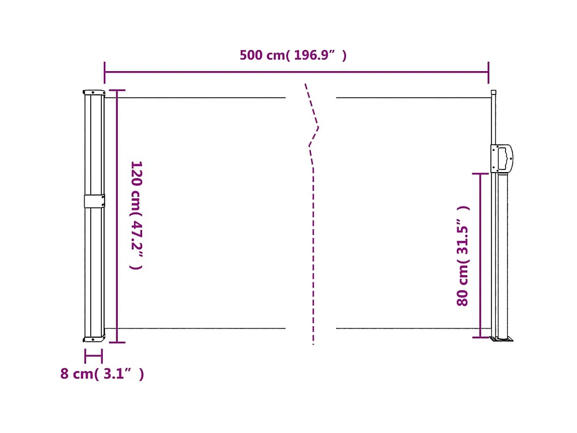 Auvent latéral rétractable blanc 120x500 cm