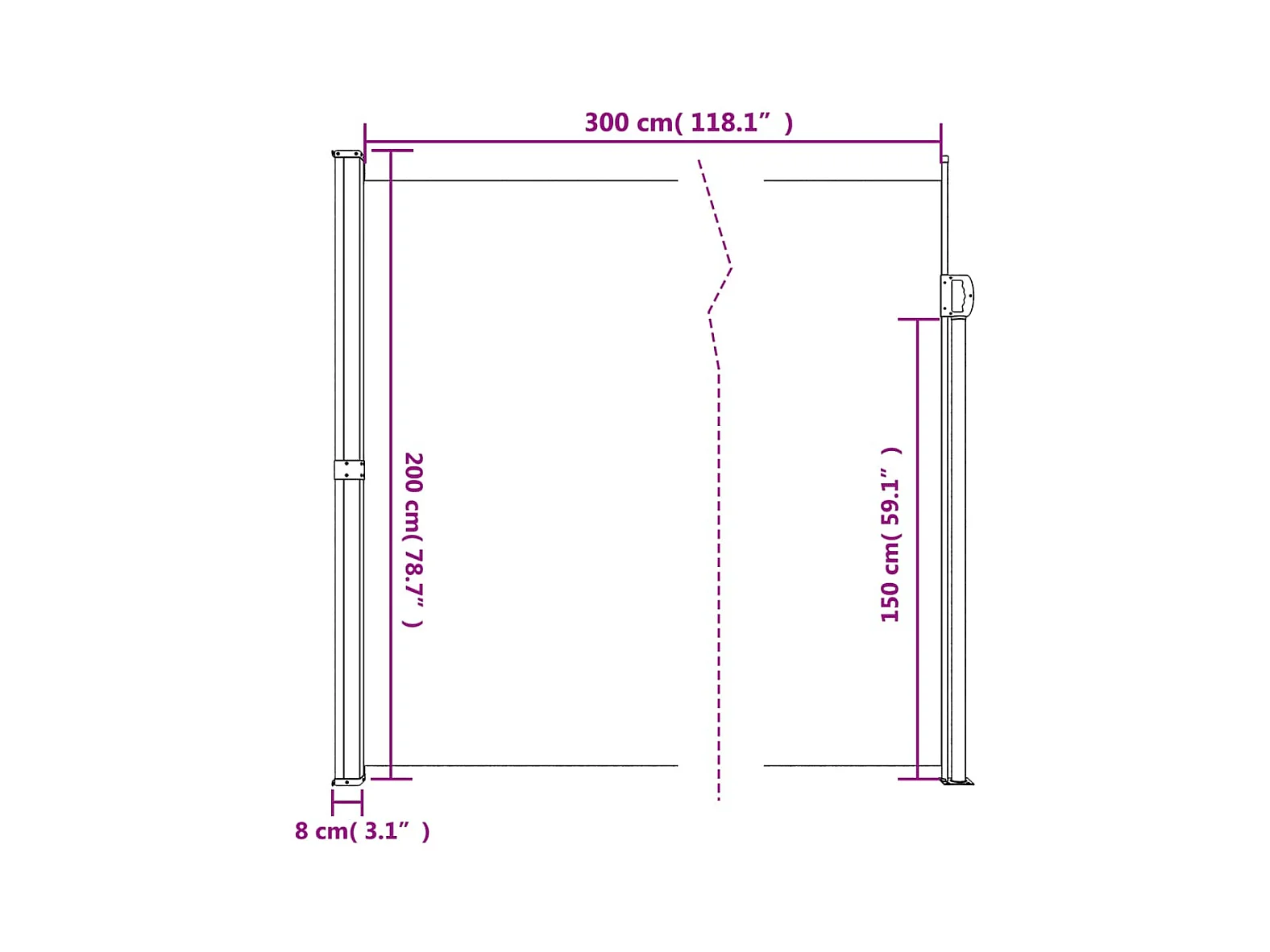 Auvent latéral rétractable blanc 200x300 cm