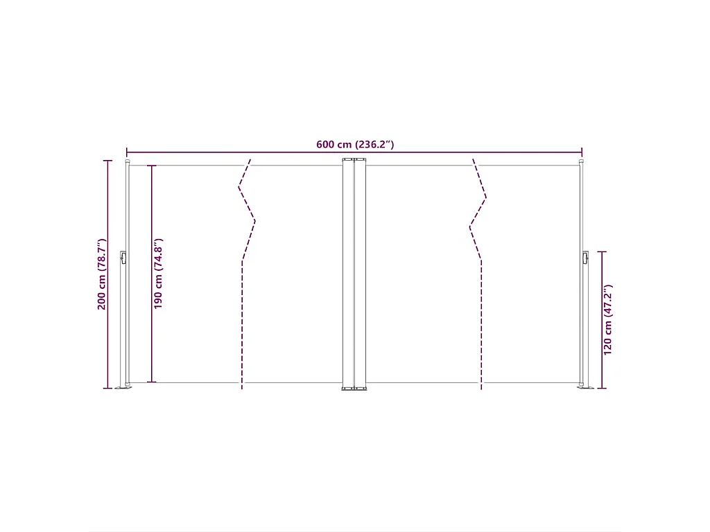 Auvent latéral rétractable Noir 200x600 cm