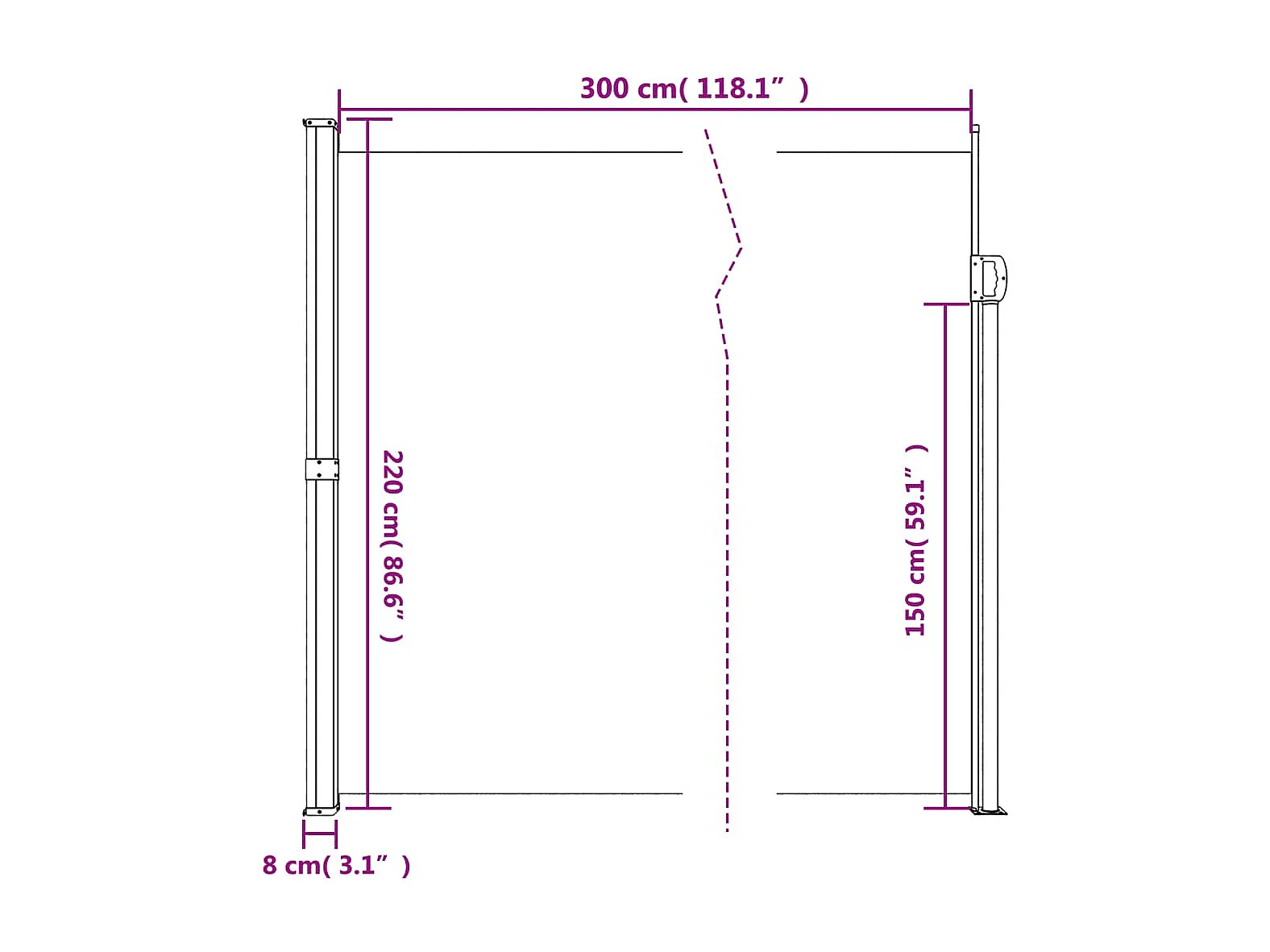 Auvent latéral rétractable noir 220x300 cm