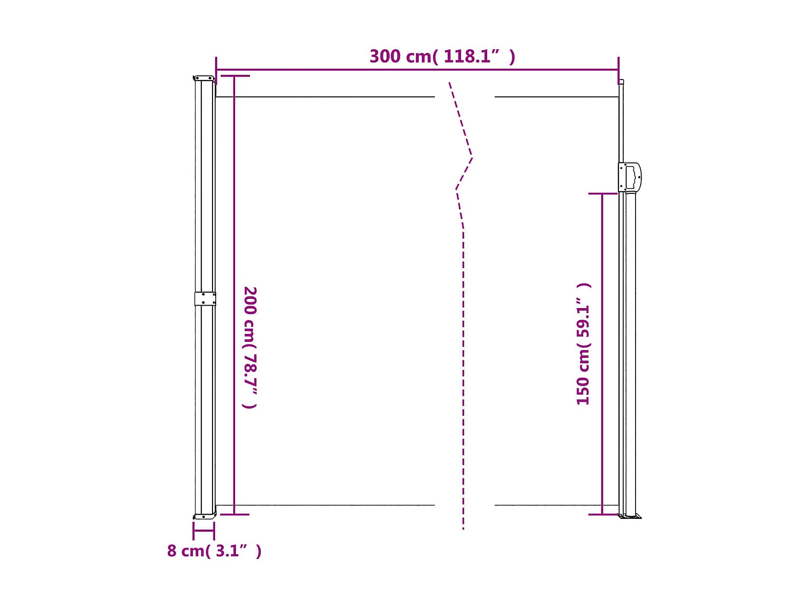 Auvent latéral rétractable taupe 200x300 cm