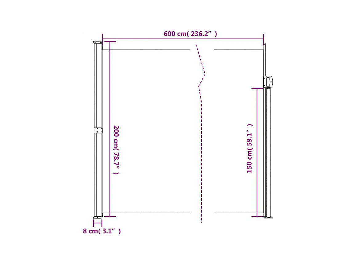 Auvent latéral rétractable vert foncé 200x600