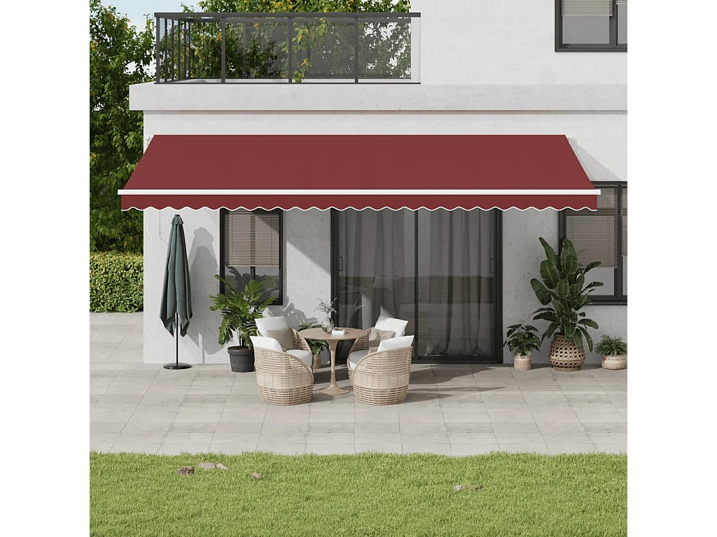 Auvent manuel rétractable avec LED bordeaux 600x350 cm