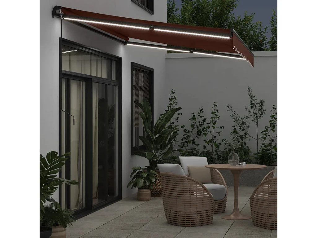Auvent manuel rétractable avec LED marron 350x250 cm