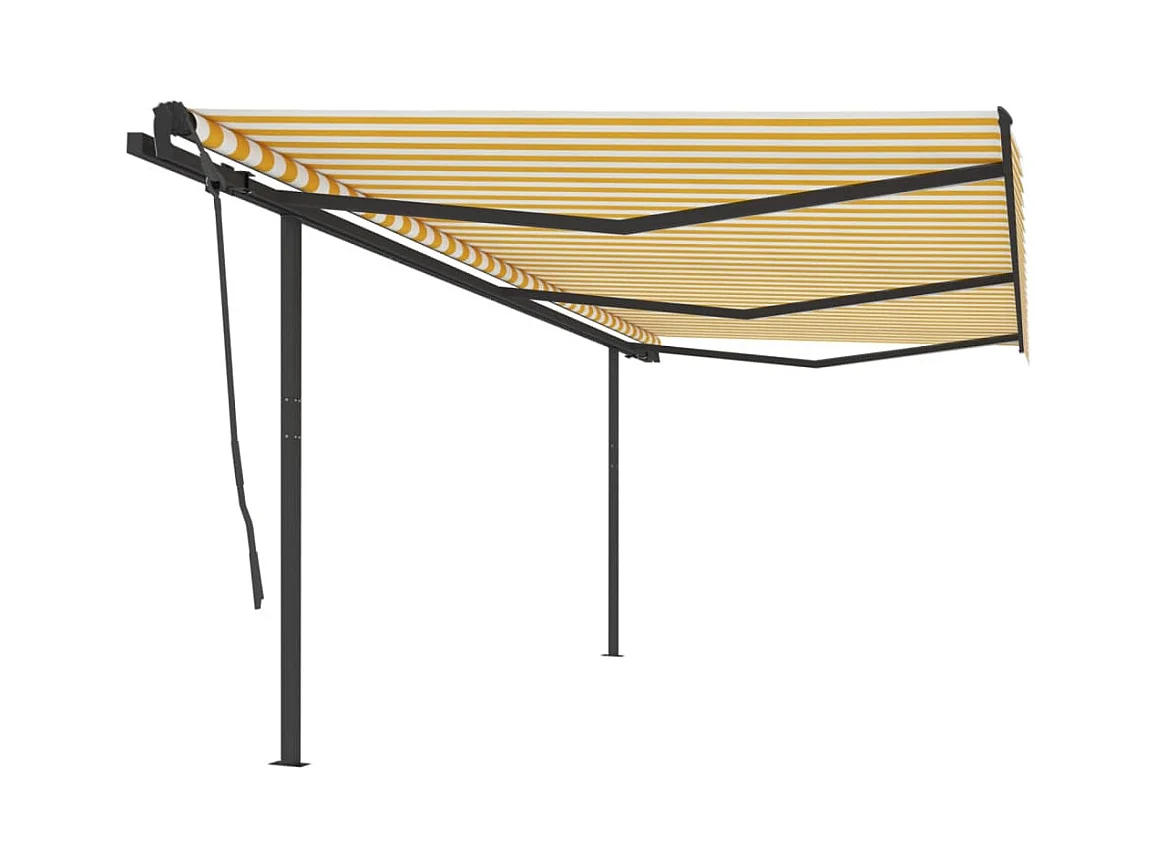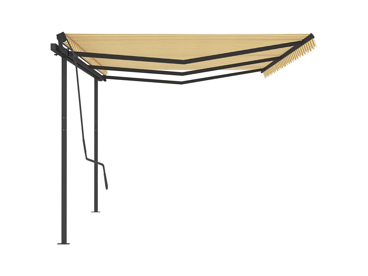 Auvent manuel rétractable avec poteaux 6x3,5 m Jaune et blanc