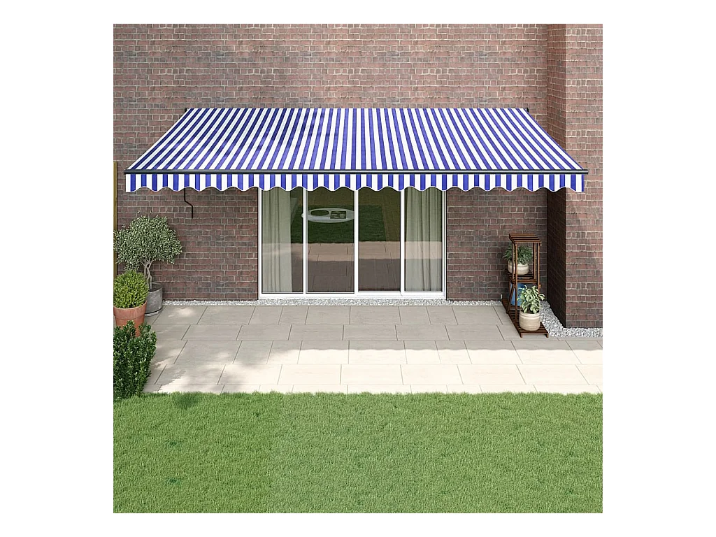 Auvent rétractable bleu et blanc 5x3 m tissu et aluminium WVGQ1985