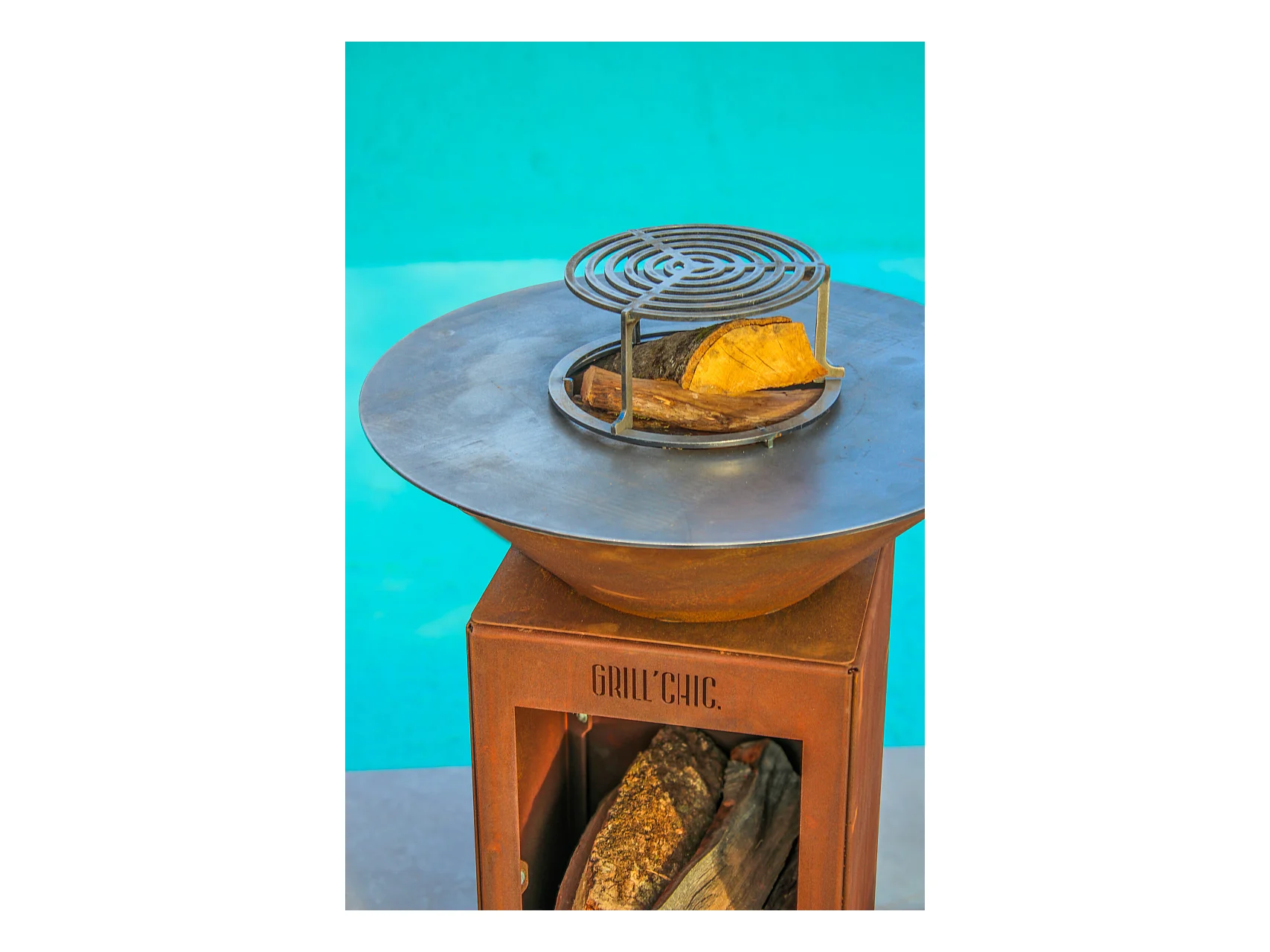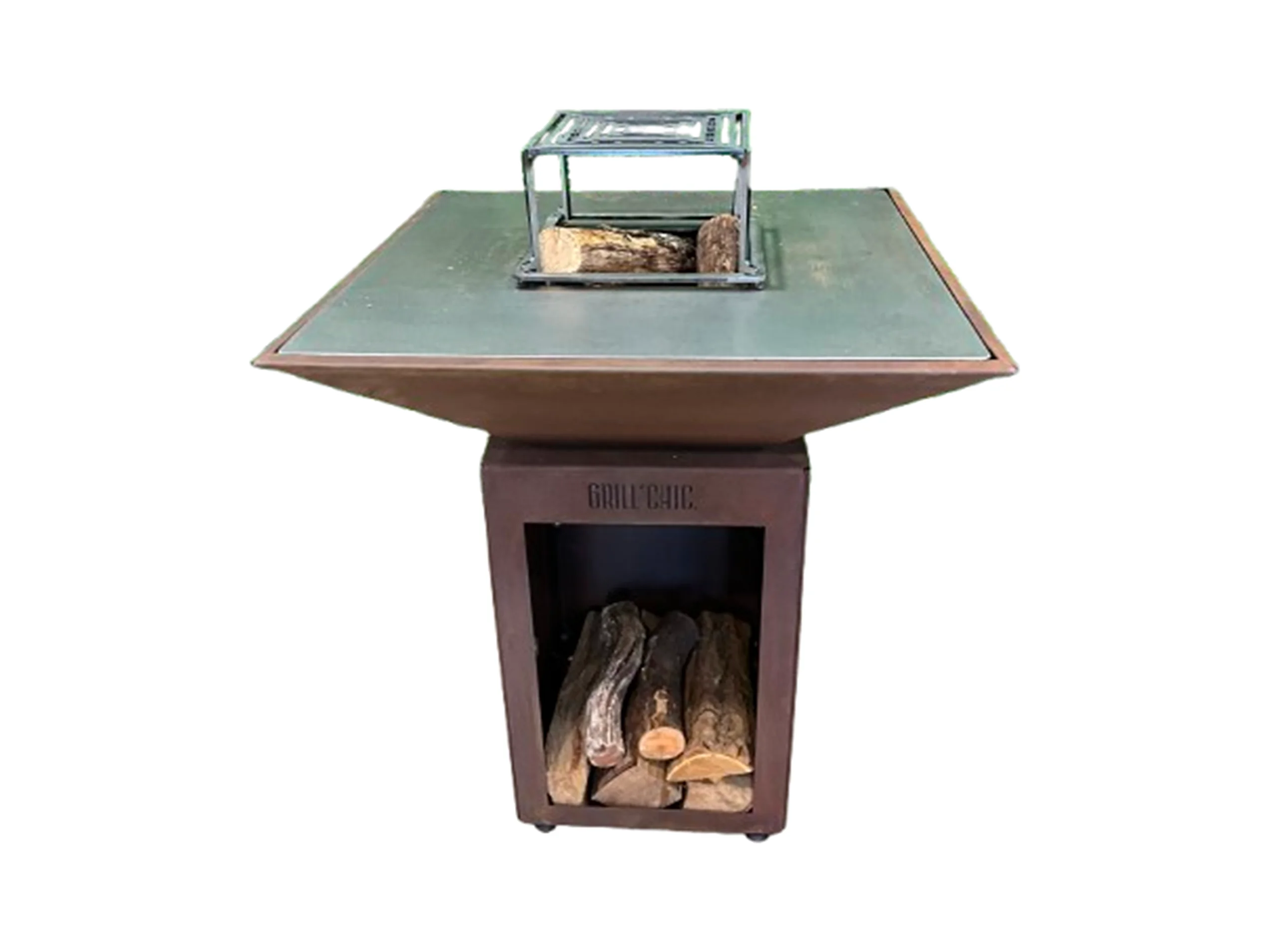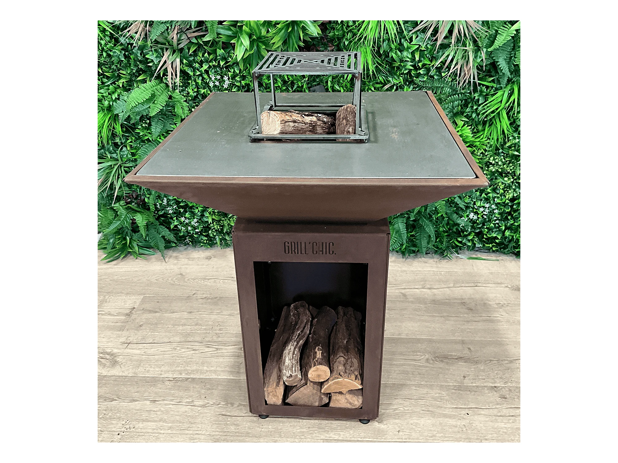 AUVERGNAT Brasero Simple Cuve Corten Carré - Avec rangement bois - Design pratique et élégant pour vos soirées en extérieur