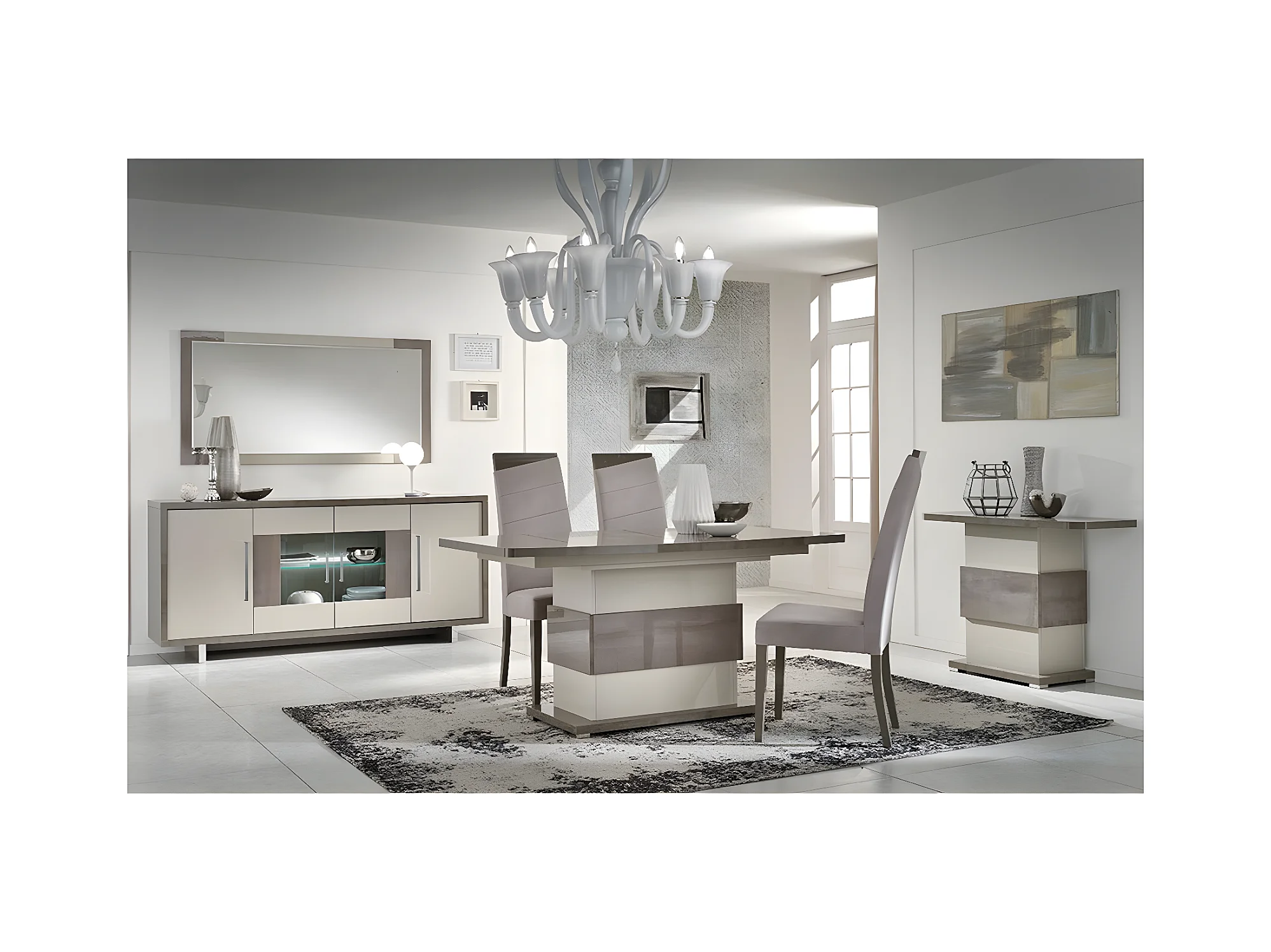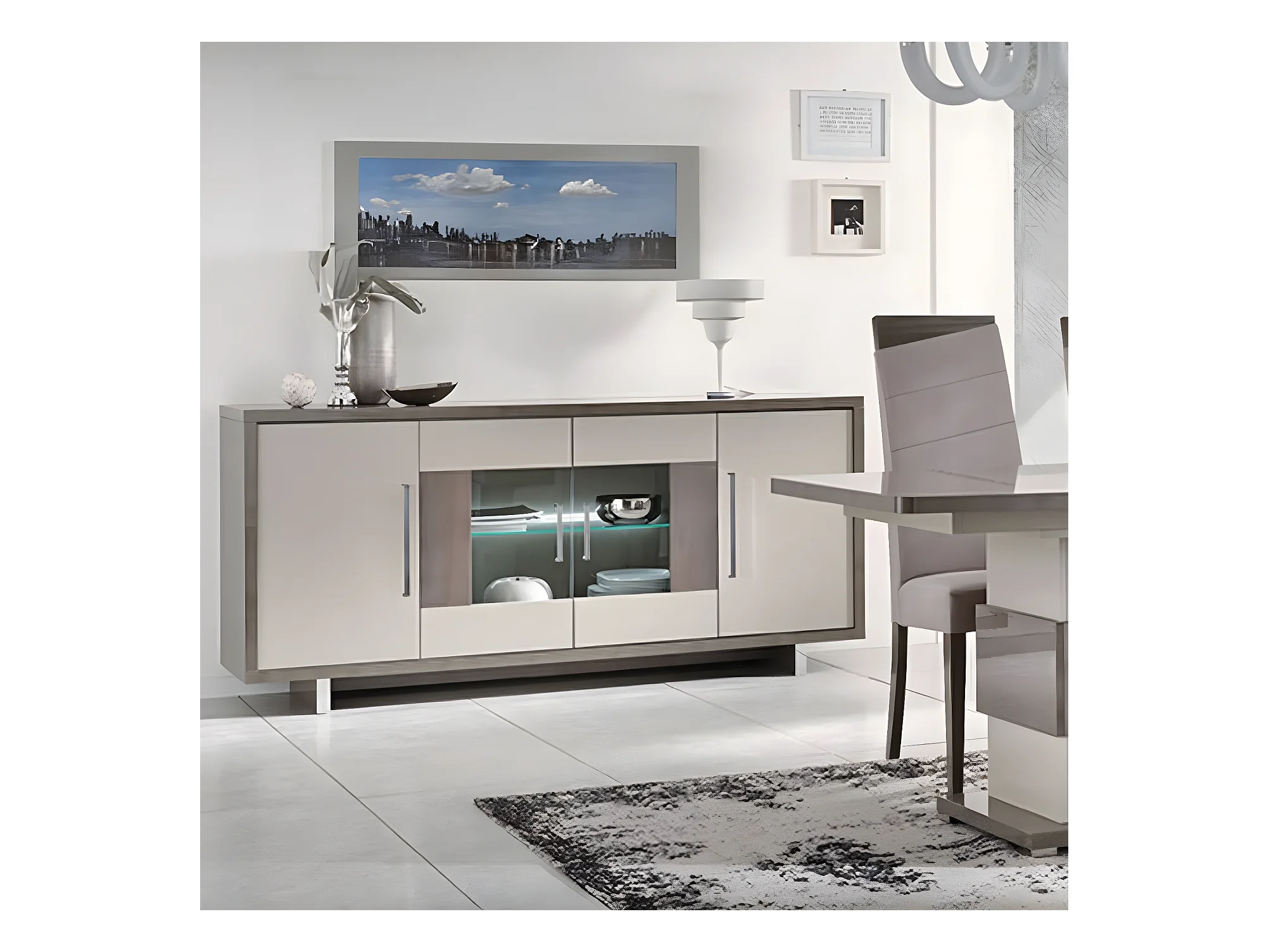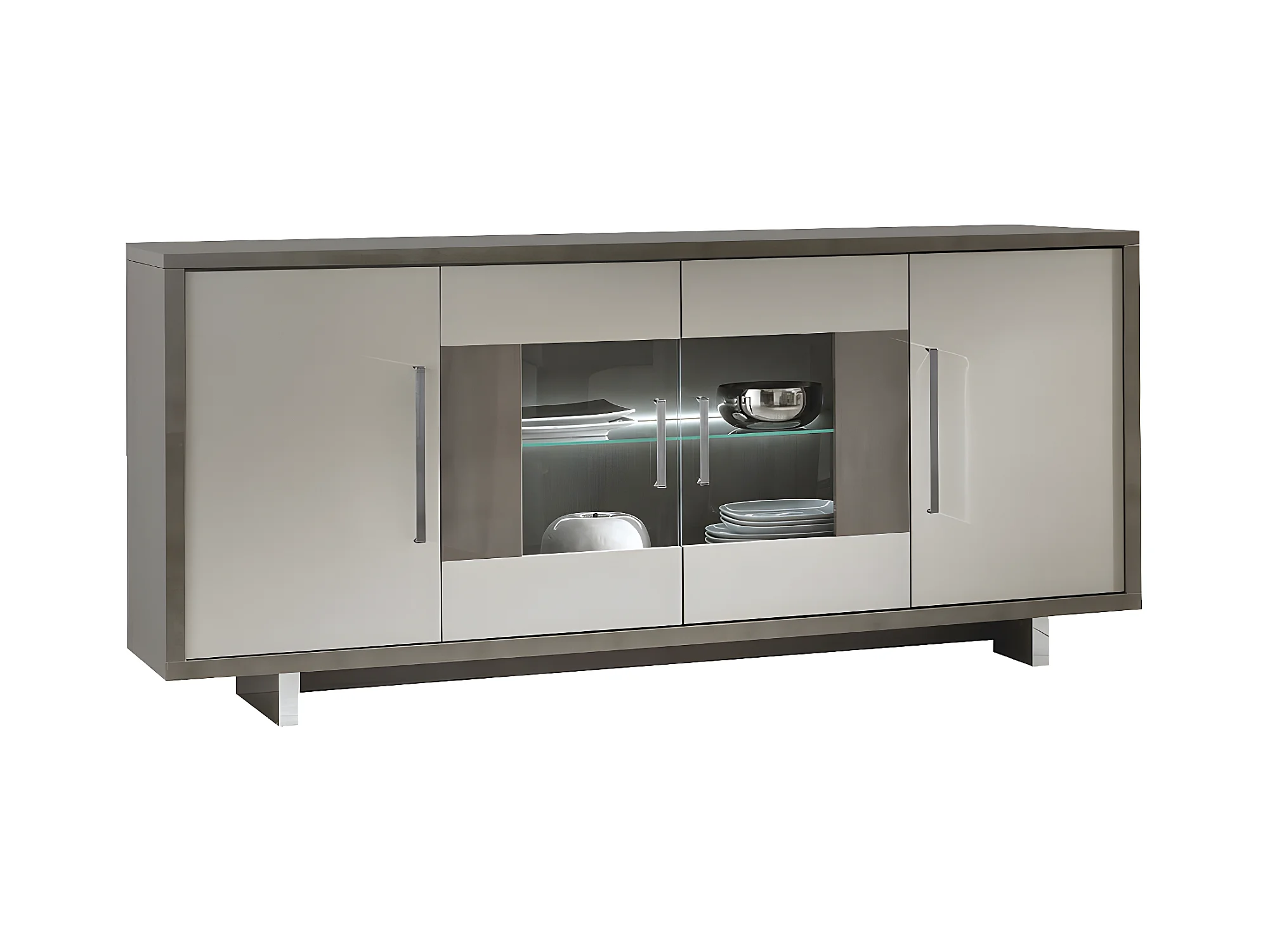 AUXANE - Buffet 4 Portes Gris Acier Metallisé et Gris Mat avec Leds