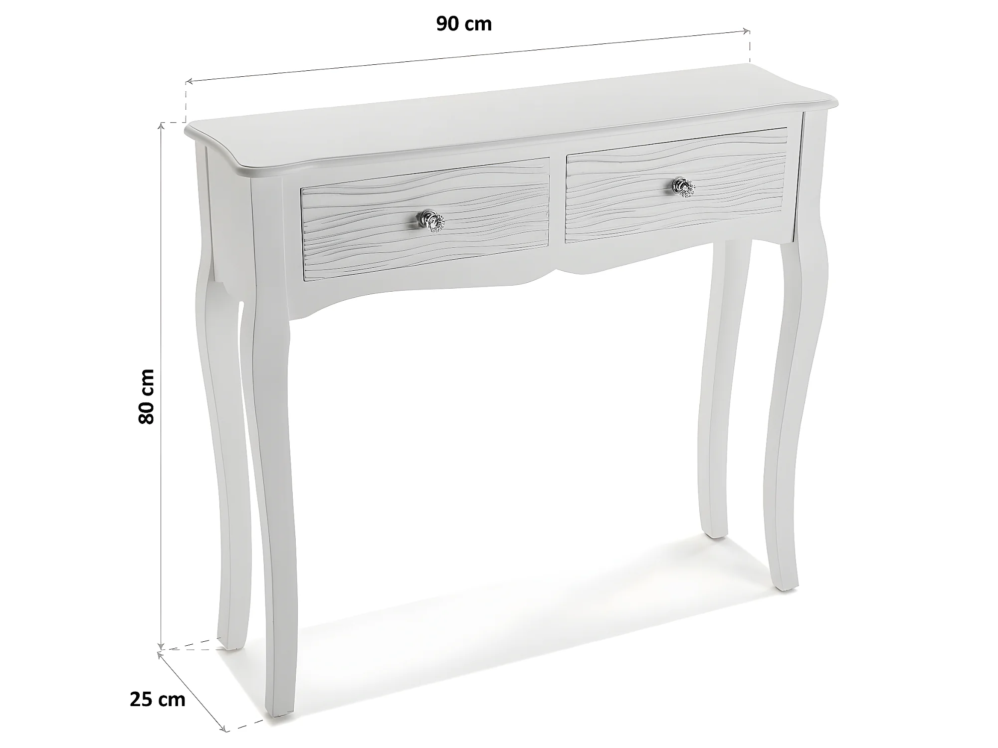 Table Console Avery, 80 x 25 x 90 cm, Bois, Blanc