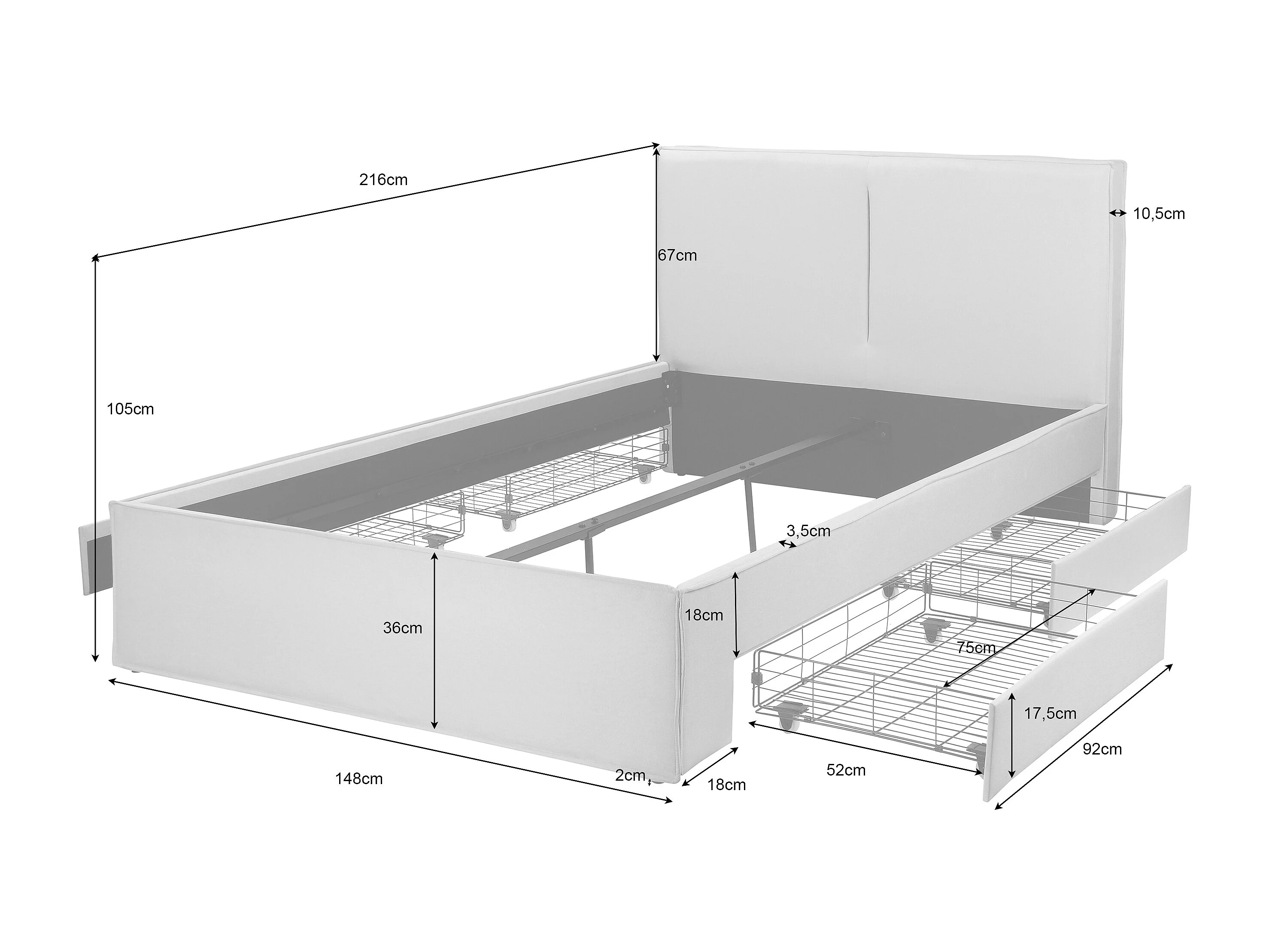 Avignon | Lit 140x200 cm avec 4 tiroirs en lin beige