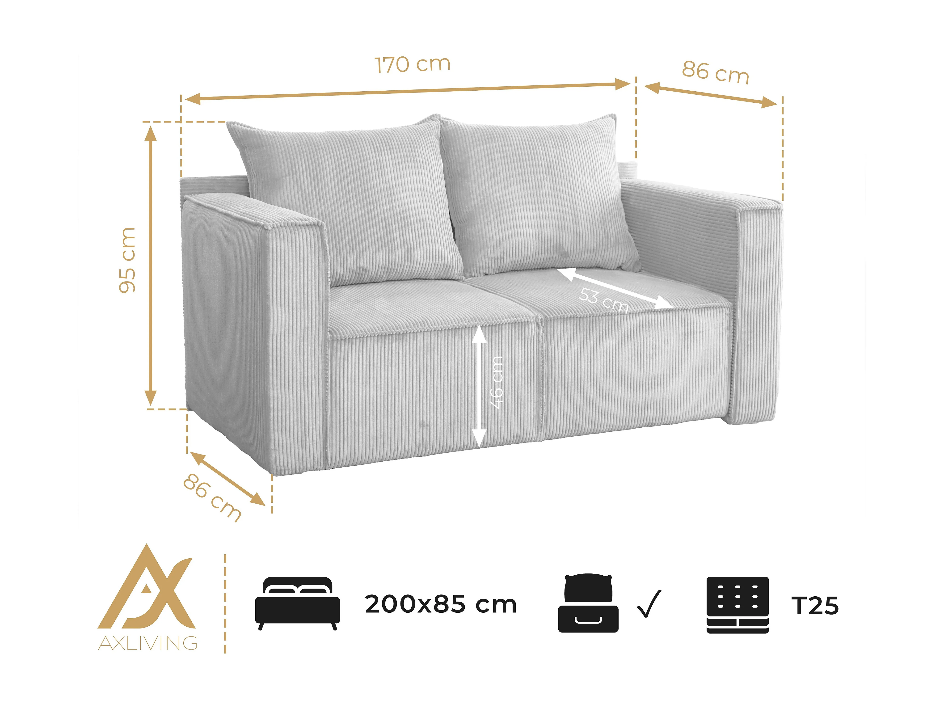 AX LIVING Canapé 2 places Hatay velours côtelé gris foncé convertible 170 cm