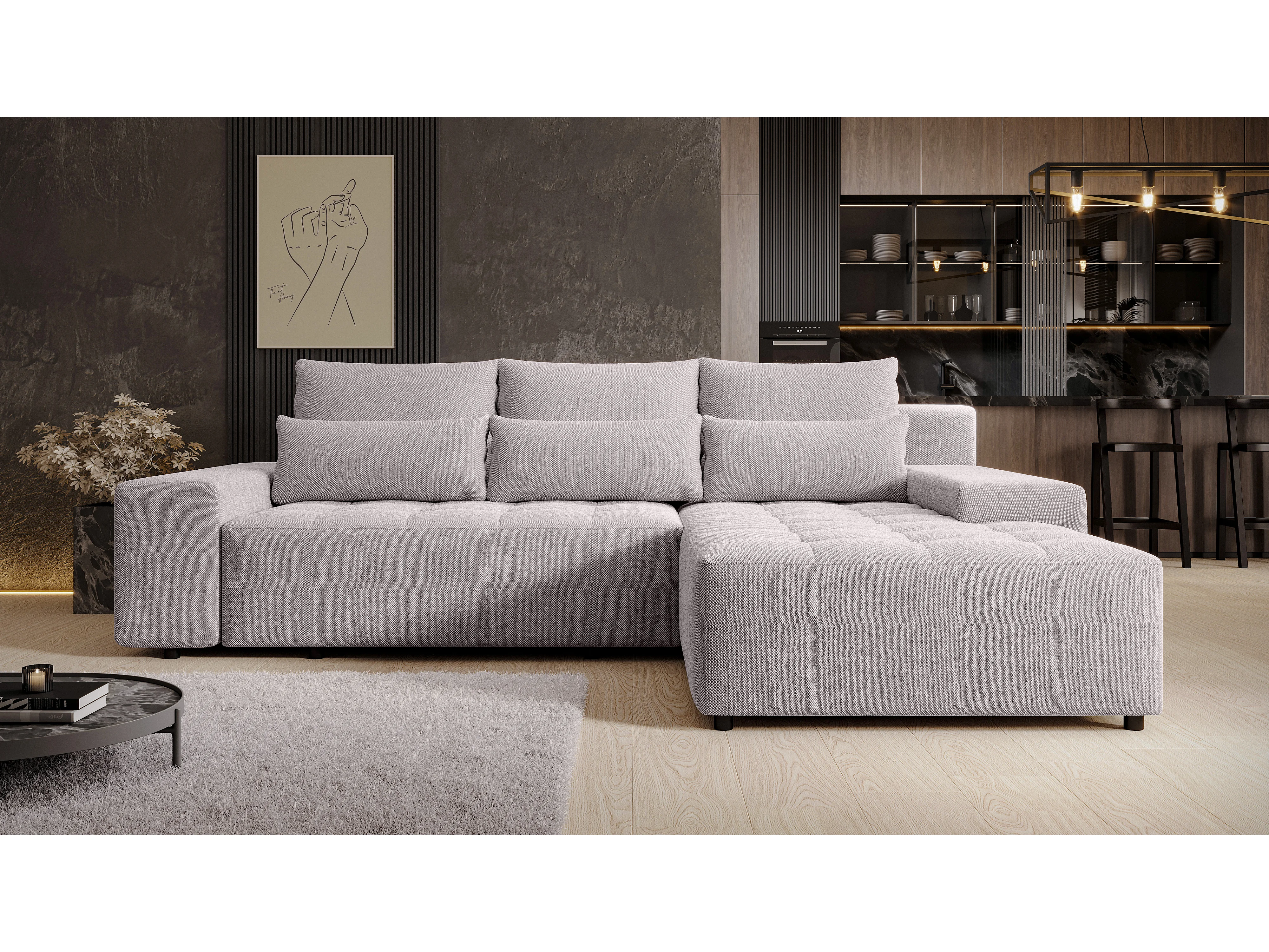 AX LIVING Canapé d’angle Alvorada 280 cm beige convertible