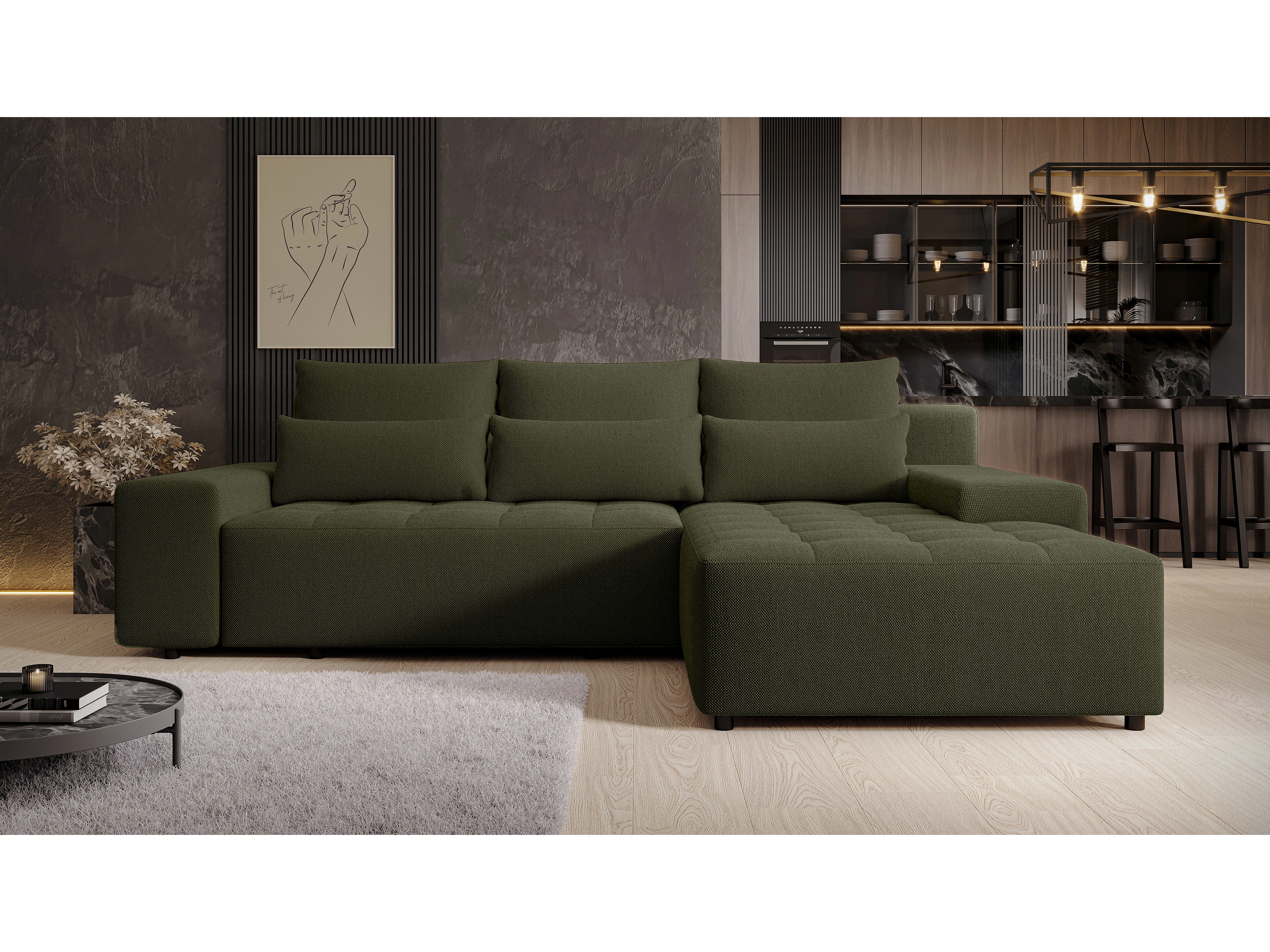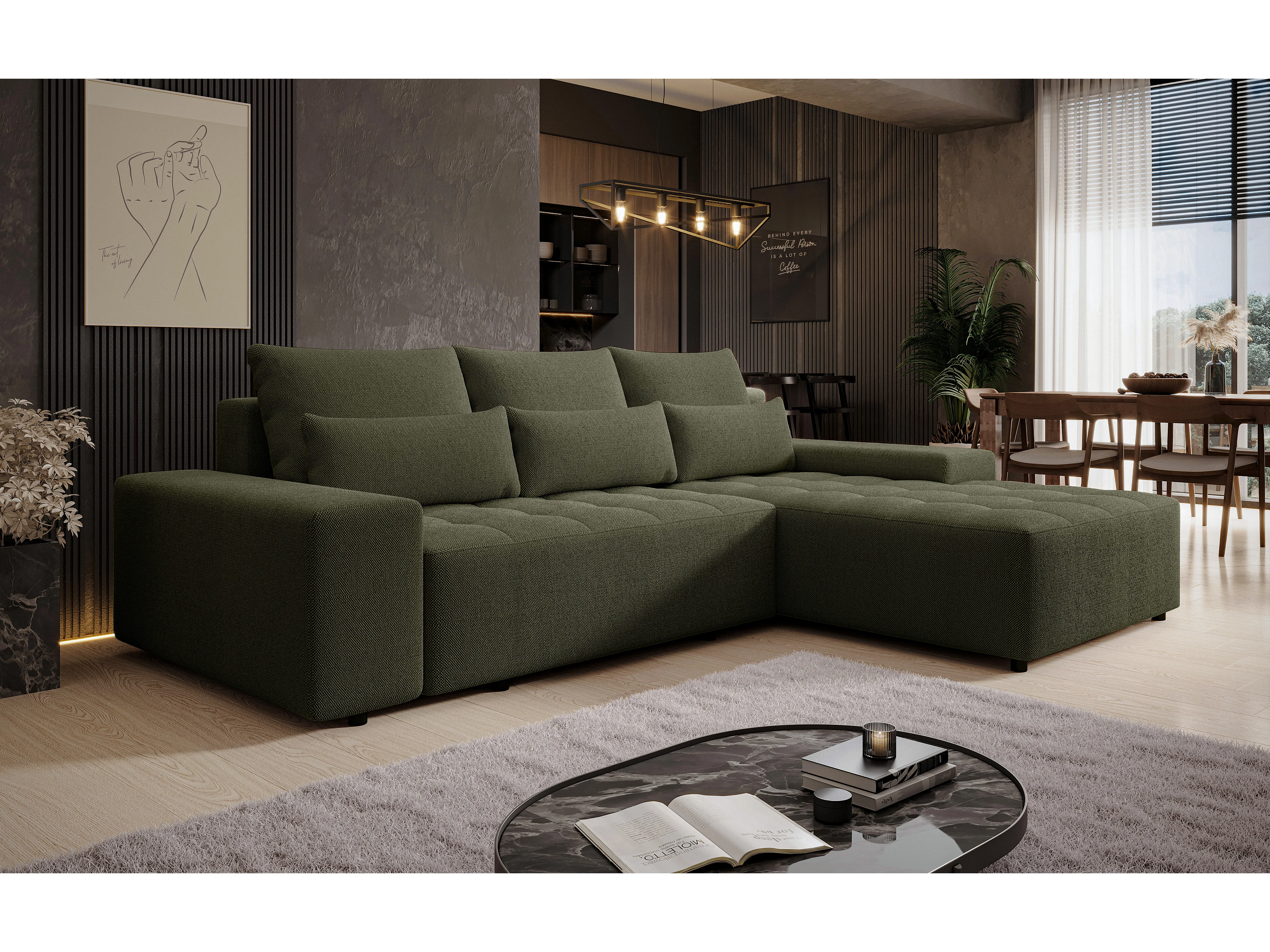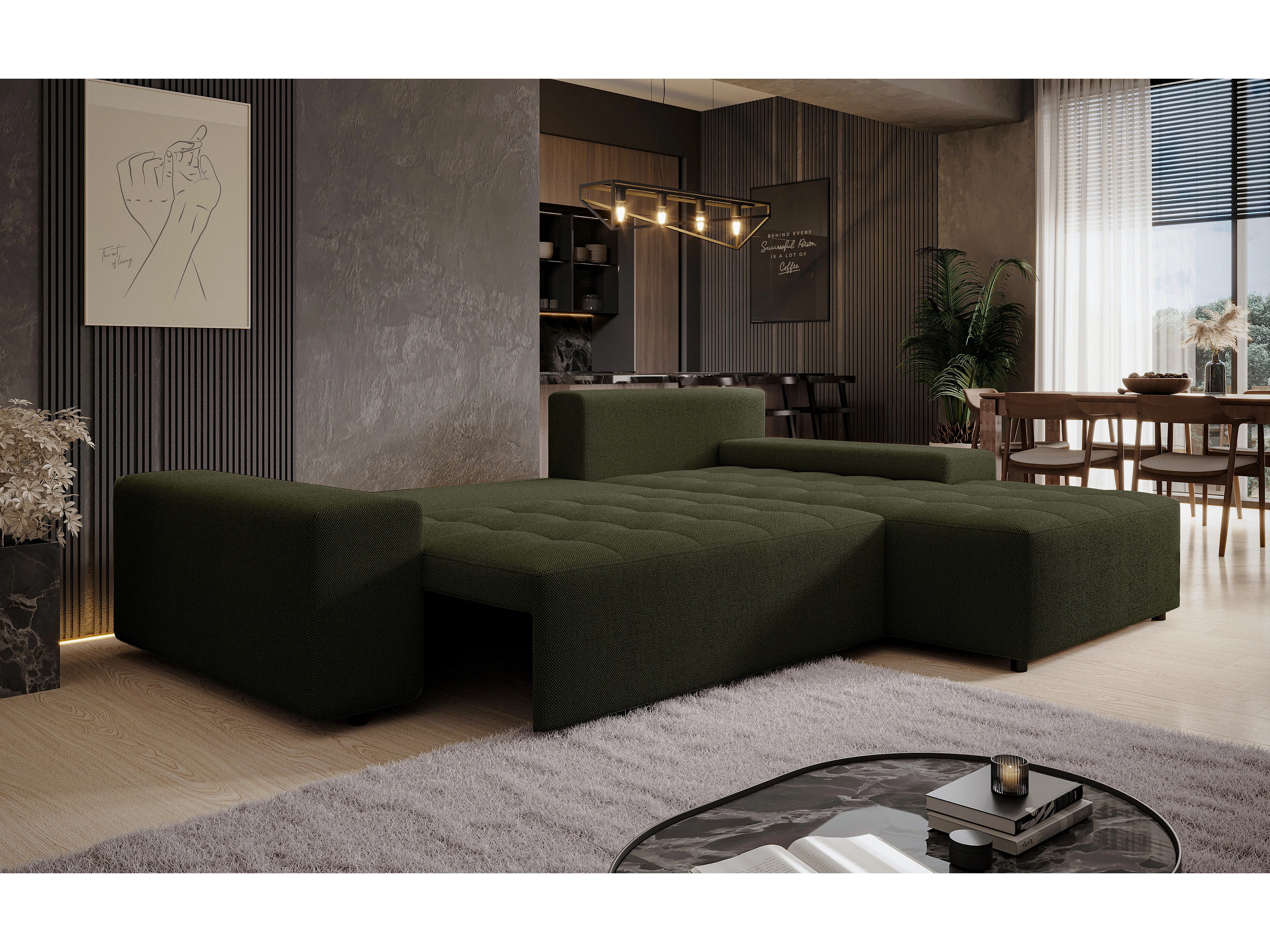 AX LIVING Canapé d’angle Alvorada 280 cm vert foncé convertible