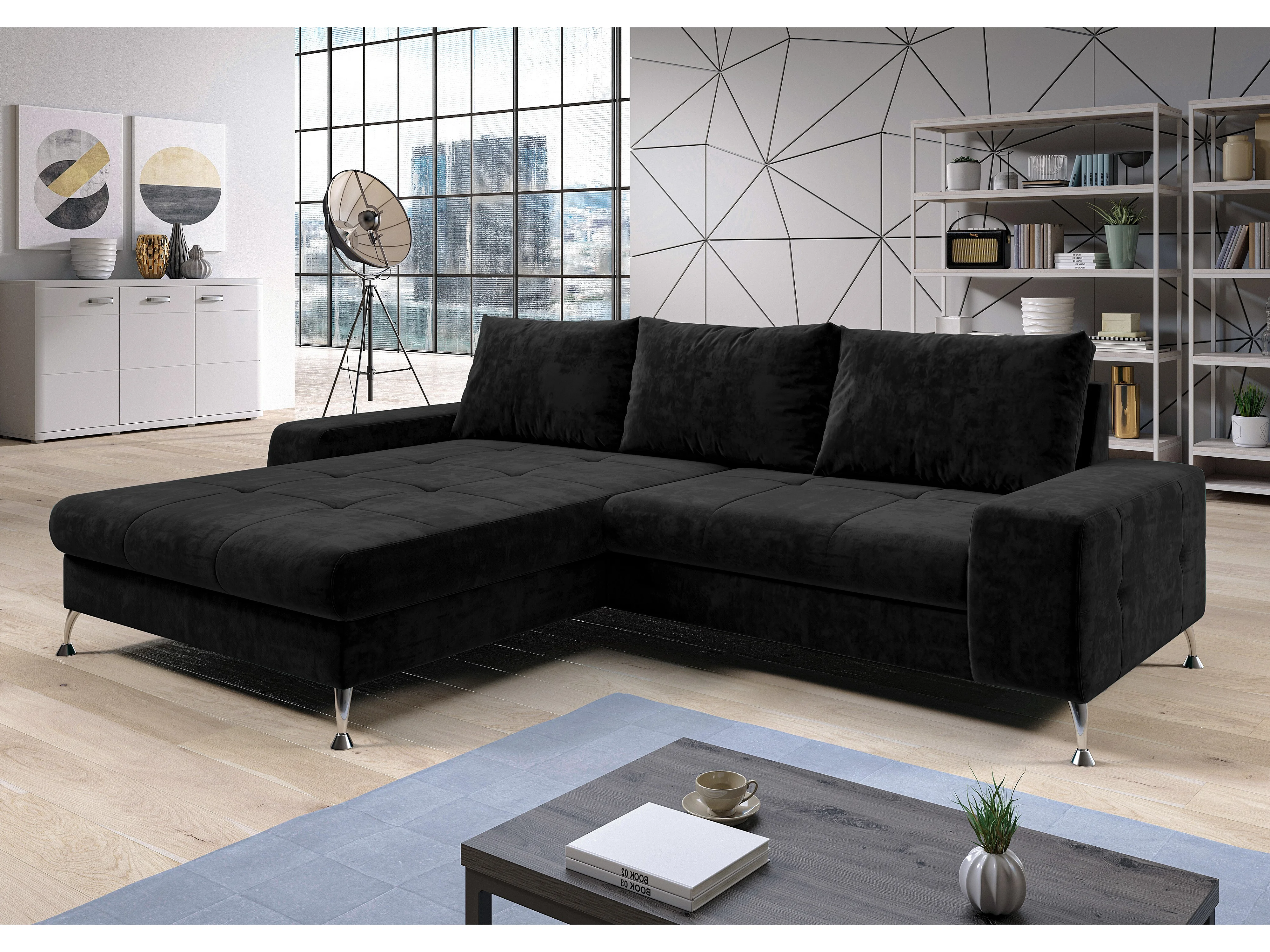 AX LIVING Canapé d’angle Artemia noir velours 275 cm convertible avec coffre gauche