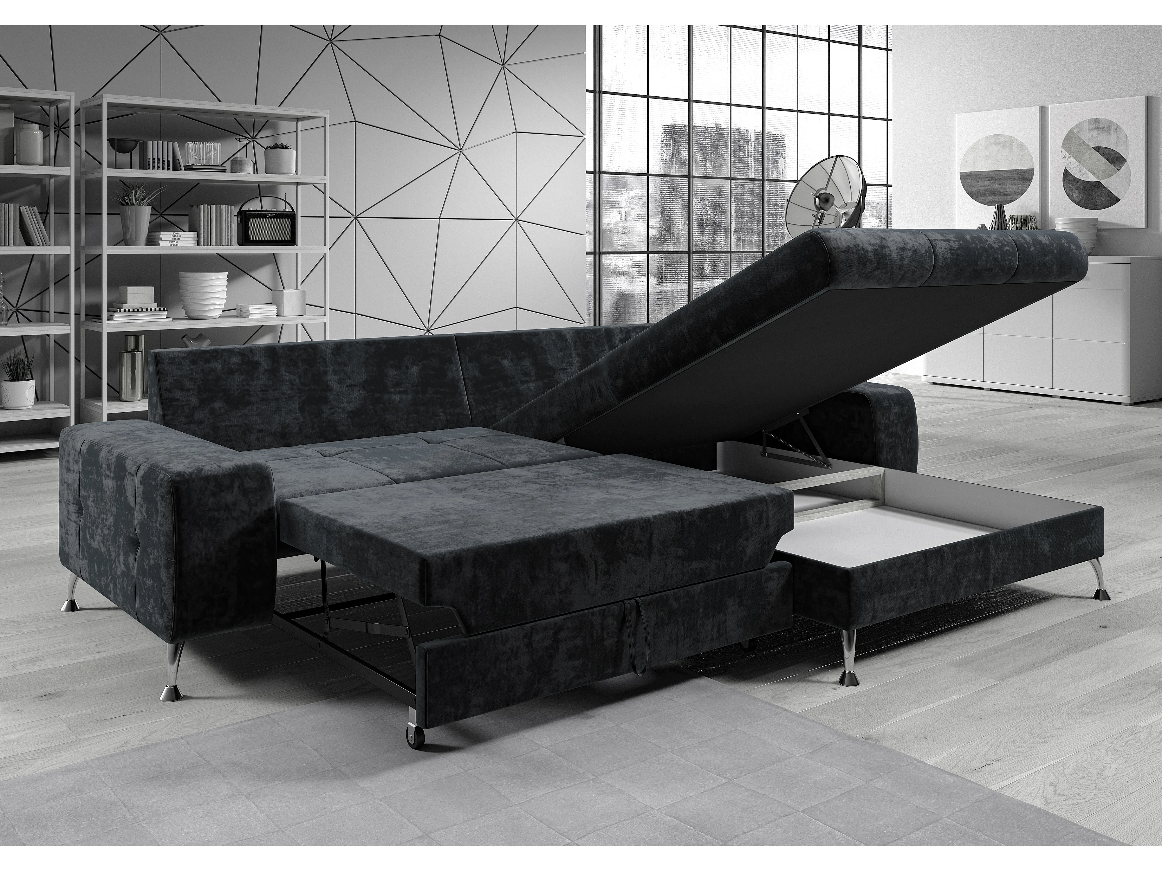AX LIVING Canapé d’angle Artemia vert velours 275 cm convertible avec coffre droite