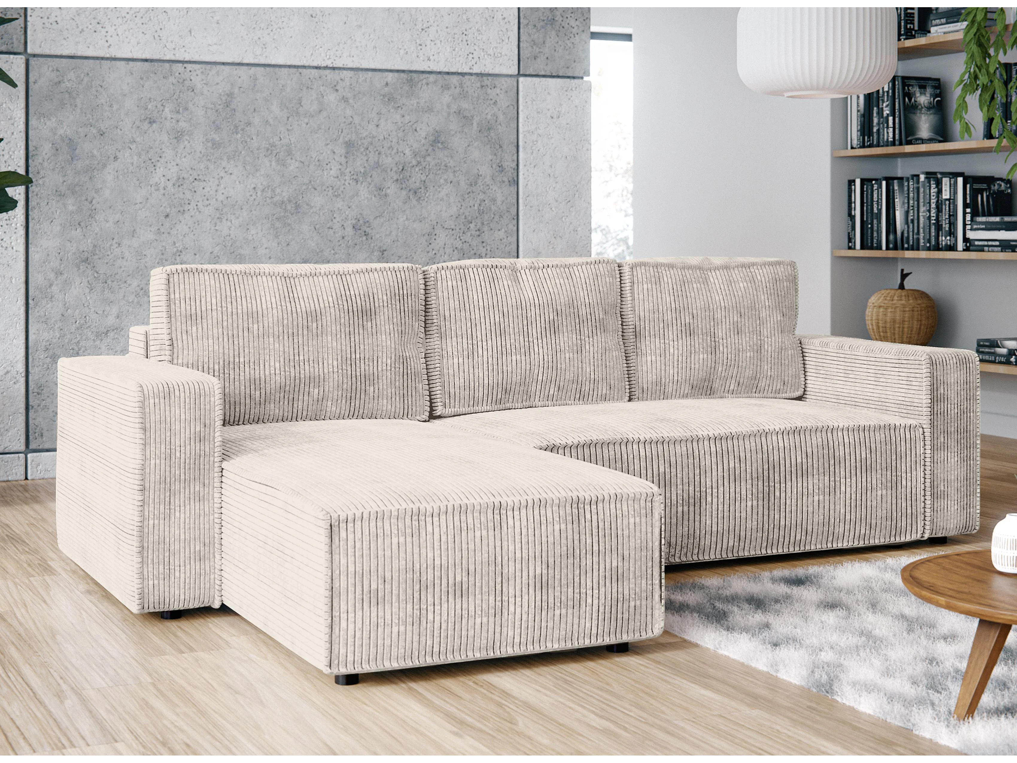 AX LIVING Canapé d’angle Aydin velours côtelé crème convertible